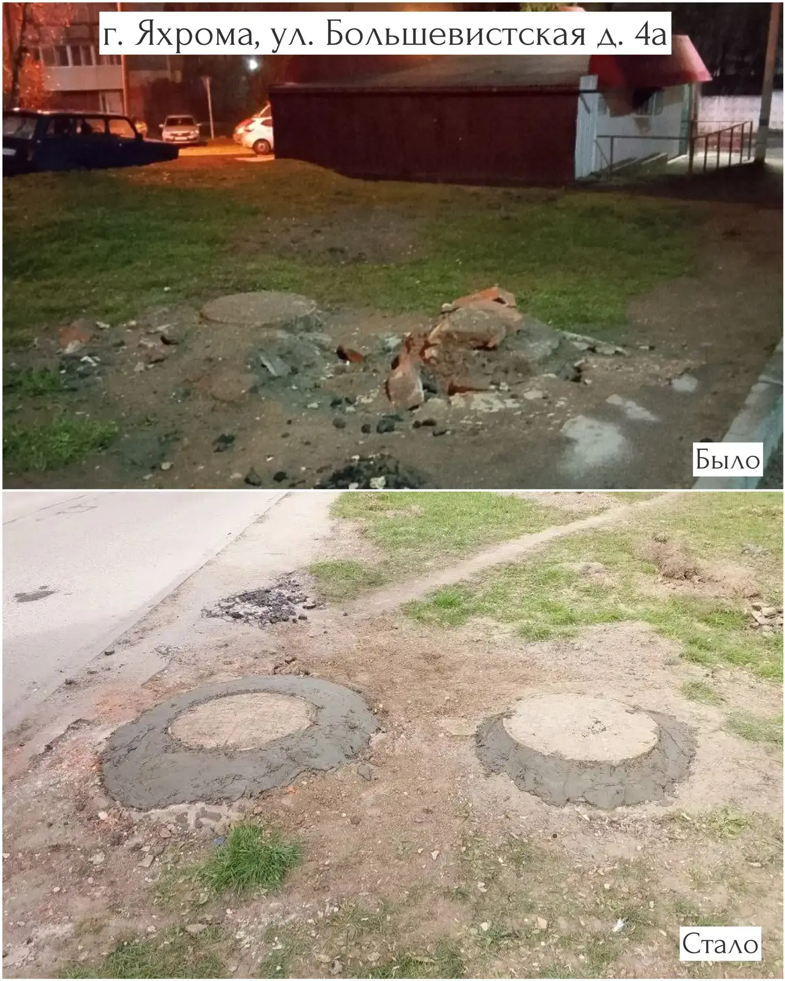 г. Яхрома, ул. Большевистская, д. 4а — два колодца восстановлены: выполнено бетонирование оголовков, прилегающая территория приведена в порядок.