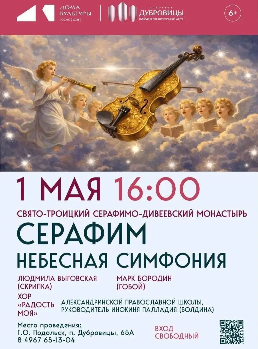 ВКультурно-просветительском центре «Дубровицы» состоится концерт «Серафим — Небесная симфония». Событие объединяет Светлое Христово Воскресение и День Победы — это торжество жизни, памяти и духовного возрождения.