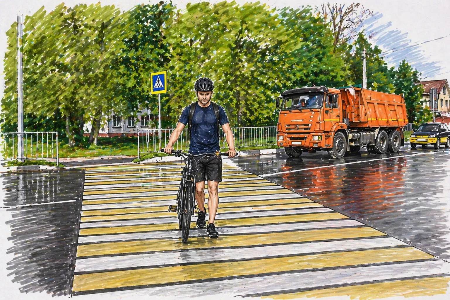Езда на велосипеде по пешеходному переходу (водители машин обязаны пропускать только пешеходов; ДТП на переходе – вина велосипедиста).