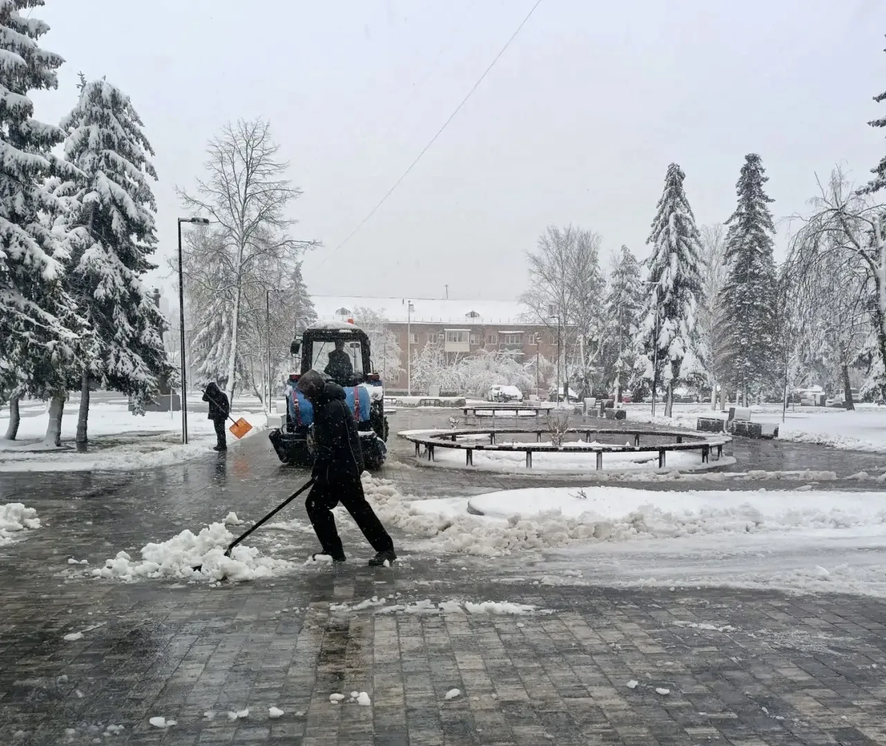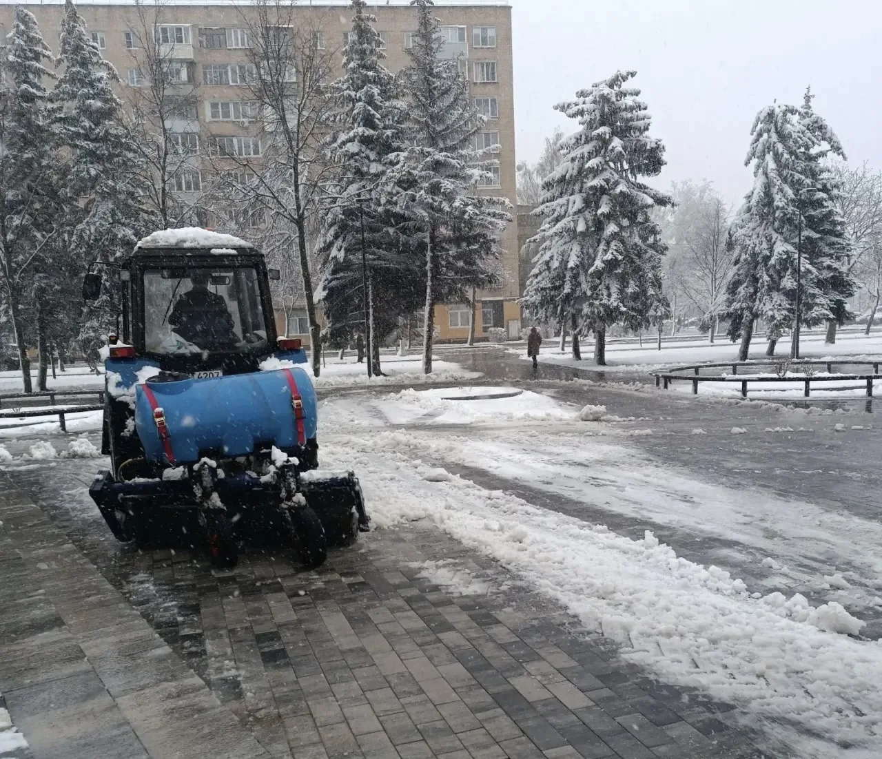 Коммунальные и дорожные службы округа работают в усиленном режиме в городе и сельских населенных пунктах. С раннего утра ведётся расчистка дорог, тротуаров, дворовых территорий и общественных пространств.