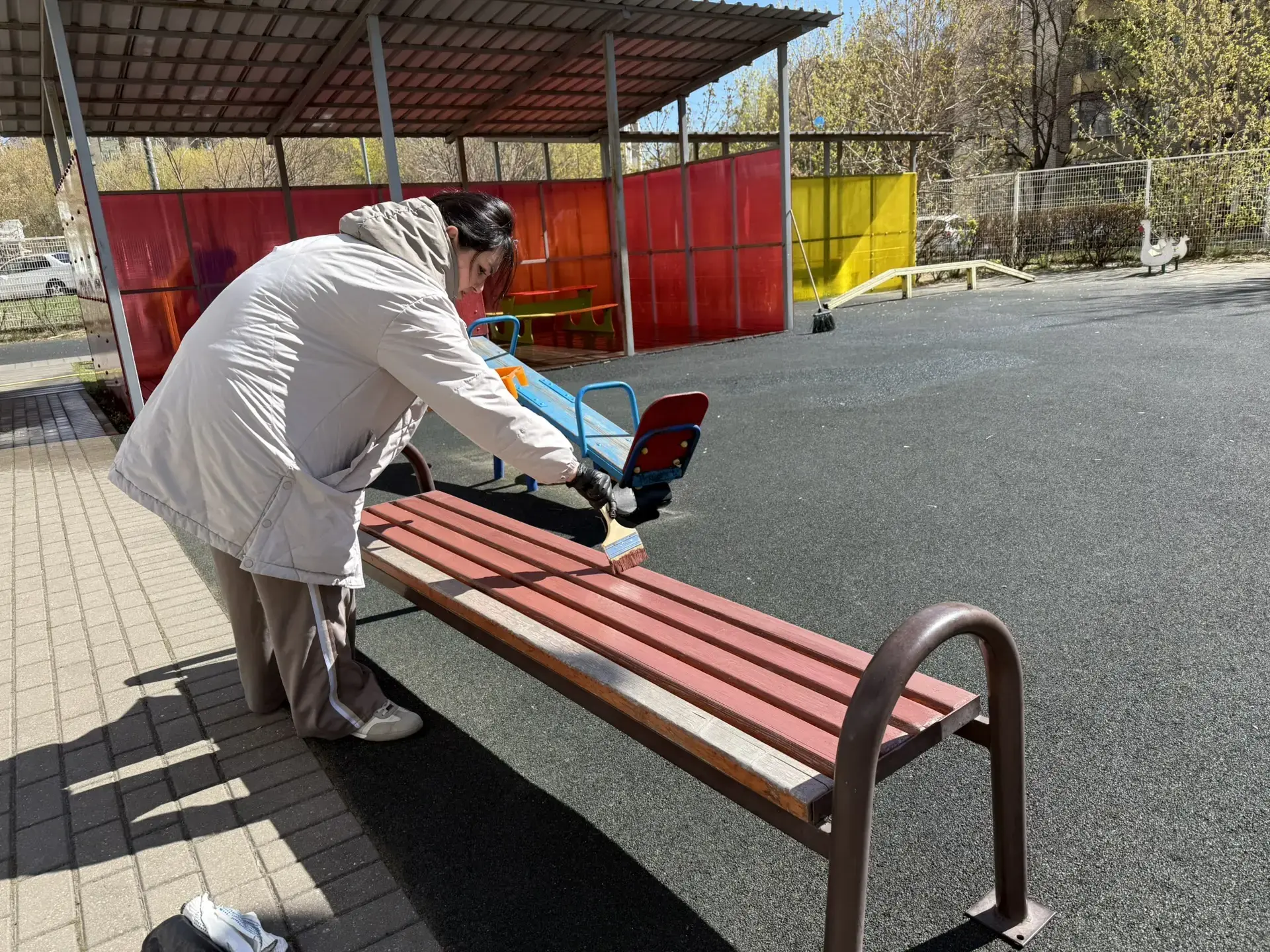 За время субботника педагоги собрали прошлогоднюю листву и мелкий мусор, очистили дорожки и газоны. Кроме того, обновили внешний вид малых архитектурных форм — покрасили скамейки, ограждения, элементы детских игровых площадок и бордюры на прогулочных участках.