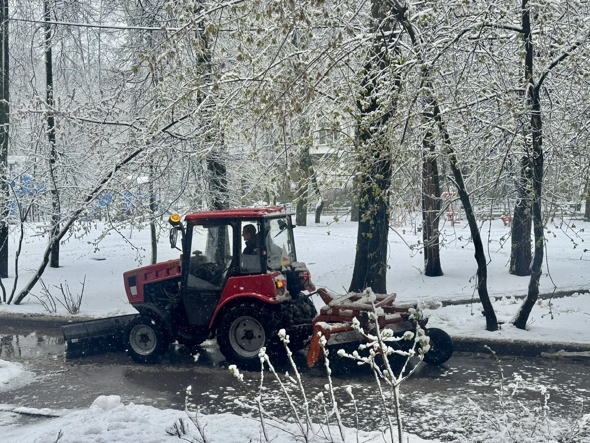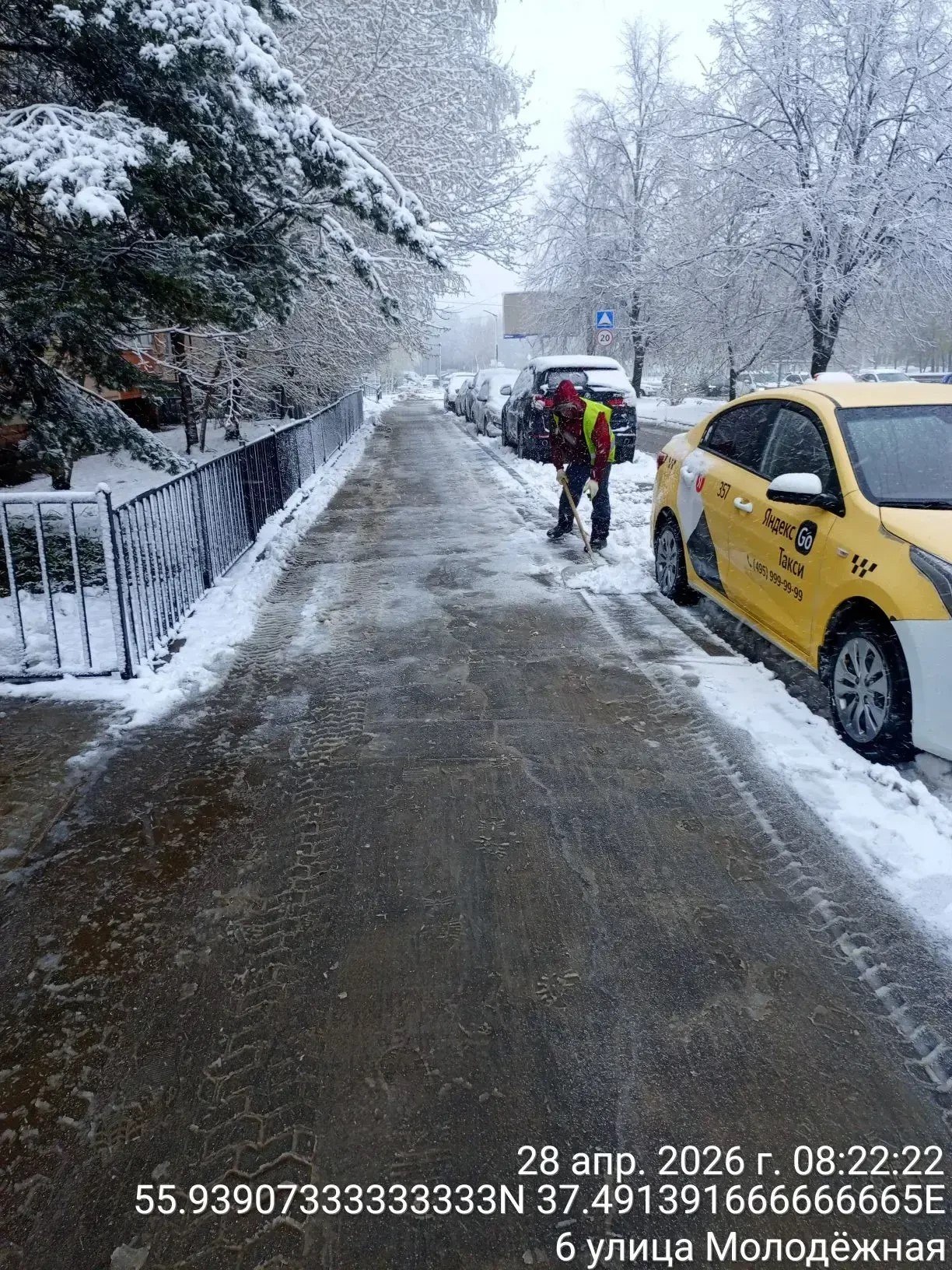 14 управляющих компаний округа 28 апреля направили на ликвидацию последствий стихии 234 дворника. Они вручную расчищают тротуары, дорожки, входы в подъезды.