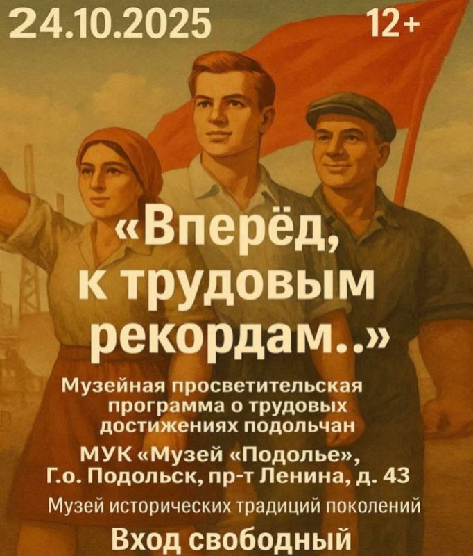 24 октября в музее «Подолье» состоится просветительская программа «Вперёд, к трудовым рекордам…», посвященная трудовым достижениям жителей Подольска.Гости музея узнают, как подольчане закладывали трудовые традиции города. Программа расскажет о людях...
