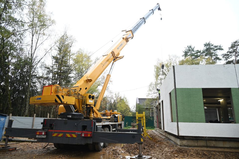 Объект строится по современной модульной технологии в рамках региональной программы развития социальной инфраструктуры «На данном этапе мы ведем монтаж каркаса из современных трехслойных панелей и параллельно устраиваем наружные инженерные сети....