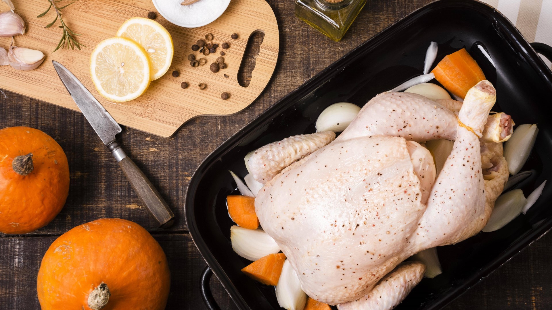 Грудку промойте и сделайте на ней надрезы. Приправьте специями и полейте растительным маслом. Дайте немного настояться.