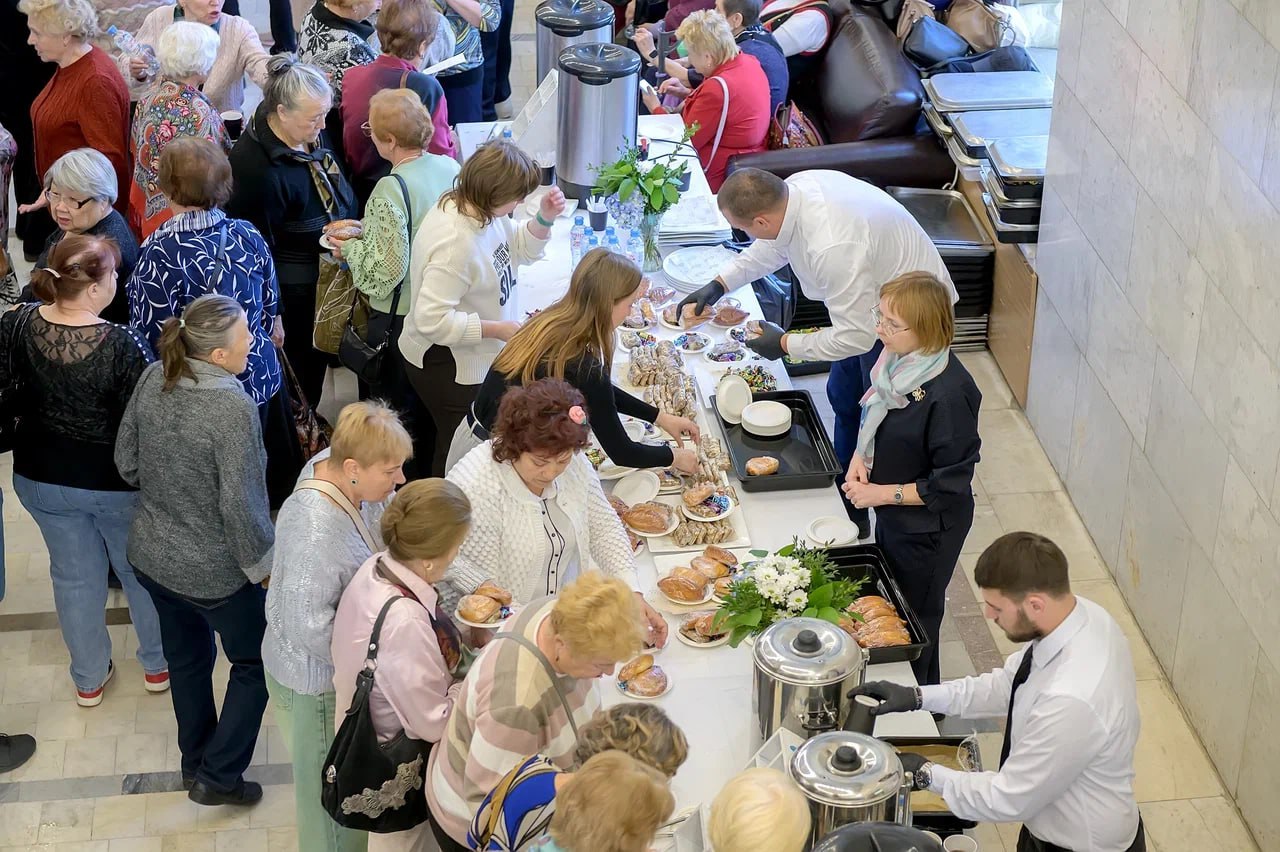В фойе театрально-концертного зала гостей встречали танцевально-развлекательной программой с участием хора «Русская песня» под руководством Владимира Недорослева. Для гостей праздника организовали чаепитие.