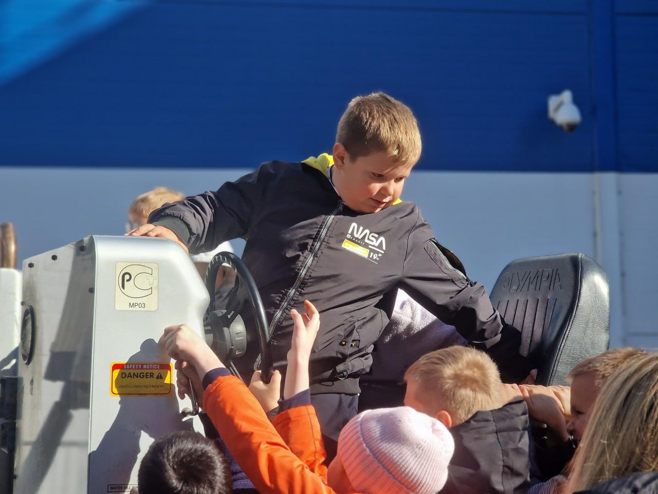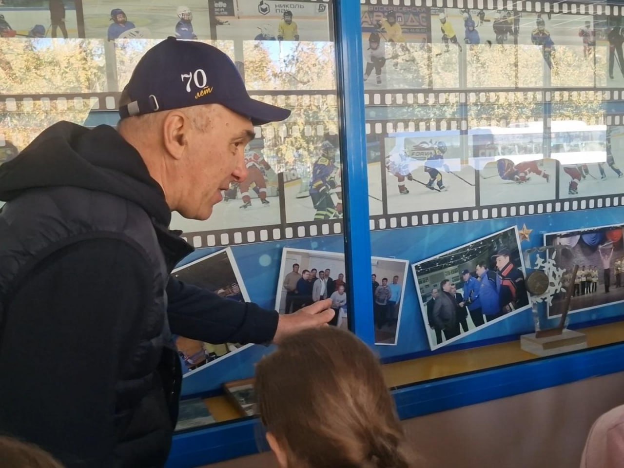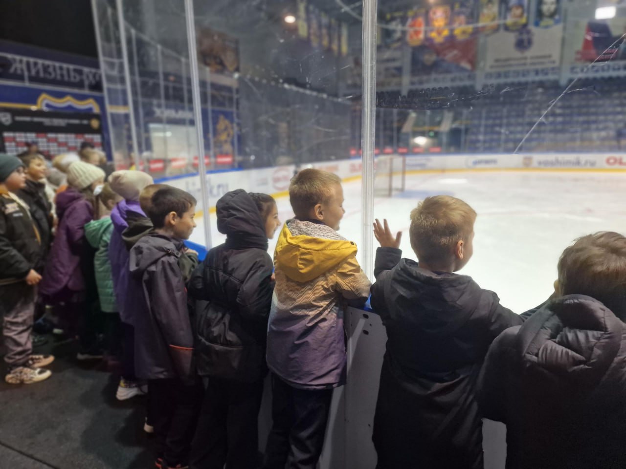 В фойе дворца дети разглядывали фотографии хоккеистов, кубки и медали. Им рассказали об истории воскресенского хоккея, который стал визитной карточкой города. Главным событием для детей стал выход к хоккейной площадке. Здесь как раз шла тренировка их ровесников. Кто-то из них ещё неуверенно скользит по льду, держась за пластиковую подставку, а кто-то уже щеголяет в именной хоккейной форме. Заметив гостей, юные хоккеисты дружелюбно подбежали к борту, чтобы дать «пять» каждому. Экскурсия продолжилась во дворе ледового дворца, где детям продемонстрировали спецтехнику — машину для заливки льда.