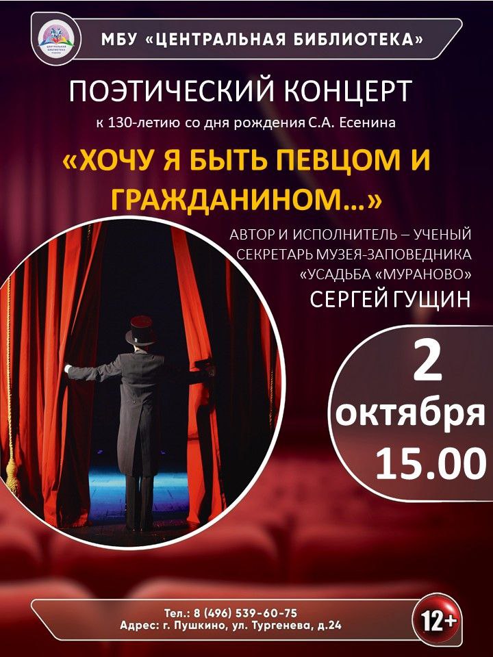 "Хочу я быть певцом и гражданином... " — мероприятие приуроченное к юбилею одного из крупнейших отечественных поэтов Серебряного века – Сергея Александровича Есенина.