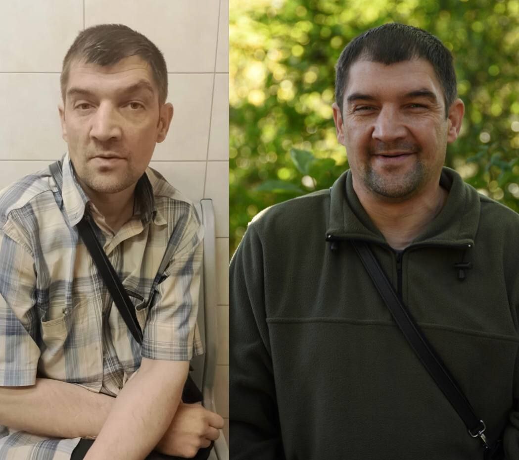 На левом фото — человек в закрытой позе: недоверчивый, загнанный, растерянный. На правом — молодой мужчина с расправленными плечами и добрым взглядом. Он остался без семьи, жилья, работы, но с минимальной верой в будущее. Такие снимки мы всегда делаем в момент поступления подопечного в «Тёплый приём» и спустя некоторое время.