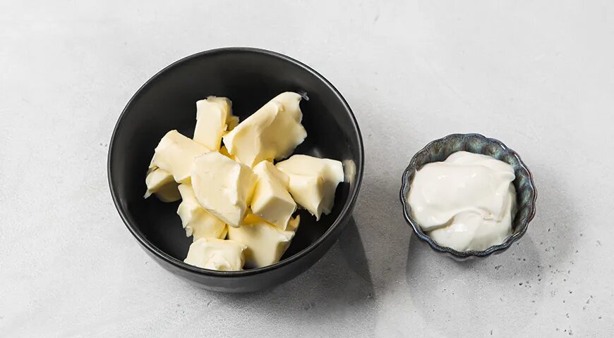 Первый шаг – подготовить все необходимые ингредиенты. Масло стоит нарезать кубиками или натереть, чтобы оно стало мягким. Сметана также должна быть при комнатной температуре. Творог важно выбрать качественный, без искусственных добавок. В идеале он должен быть свежим и натуральным, однако, если используется пластовой творог, его необходимо отцеживать через марлю, чтобы убрать лишнюю влагу.