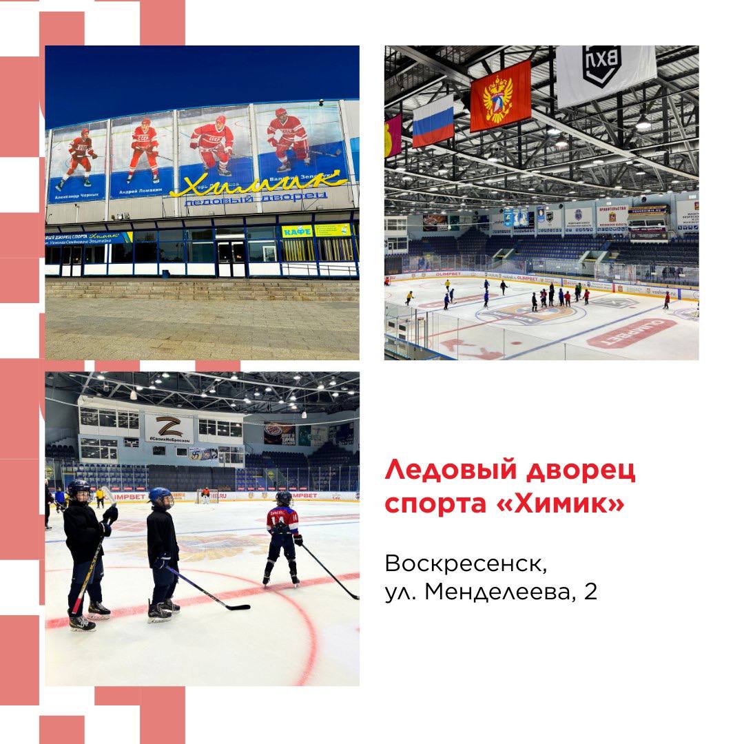 Главная спортивная арена Воскресенска, открытая в 1966 году. Ледовый дворец вмещает более 3600 зрителей и является домашней ареной хоккейного клуба «Химик» (ВХЛ) и ХК "Торнадо" (ЖХЛ). Здесь есть раздевалки, два тренажёрных зала, пресс-центр и кафе, а также музейная экспозиция, посвященная отечественному хоккею. На территории комплекса также расположены Физкультурно-оздоровительный комплекс (ФОК) им. В.В. Каменского с тренировочной ареной, спортивный корпус, площадки воркаута, универсальная площадка, площадка ГТО, хоккейная коробка и мини-футбольное поле.