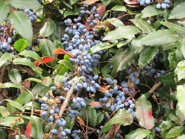 В осенний период зеленые листья приобретают красноватый оттенок, что придаёт дополнительный шарм. Ягоды эти, хоть и несъедобны в сыром виде, являются популярным ингредиентом для соков, джемов и компотов в Америке, где магония культивируется на плантациях.