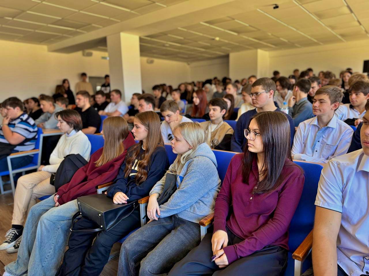 Студенты активно участвовали в беседе, задавая множество актуальных вопросов, в том числе о последних изменениях в законодательстве в сфере безопасности дорожного движения.