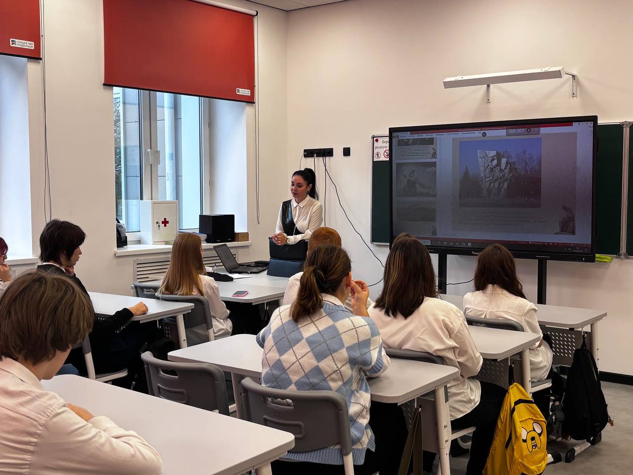 На уроках мужества и памяти ребята из второго корпуса лицея узнали о беспрецедентном подвиге молодых курсантов, которые, несмотря на нехватку вооружения и боеприпасов, встали на защиту столицы.