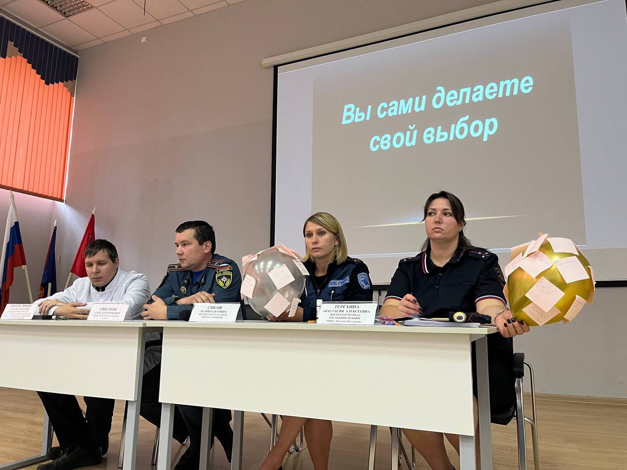 В Павлово-Посадском техникуме сотрудники местной Госавтоинспекции совместно с коллегами из 5 батальона 2 полка ДПС «Южный», заместителем начальника пожарно-спасательной части и представителем медицинской отрасли провели для студентов «краш-курс», основной целью которого стало формирование у молодых людей ответственного поведения на дороге.