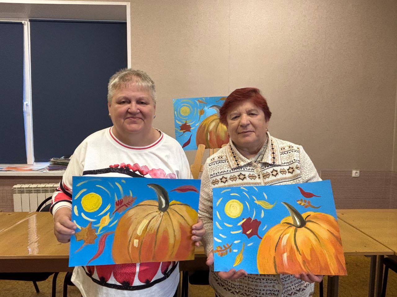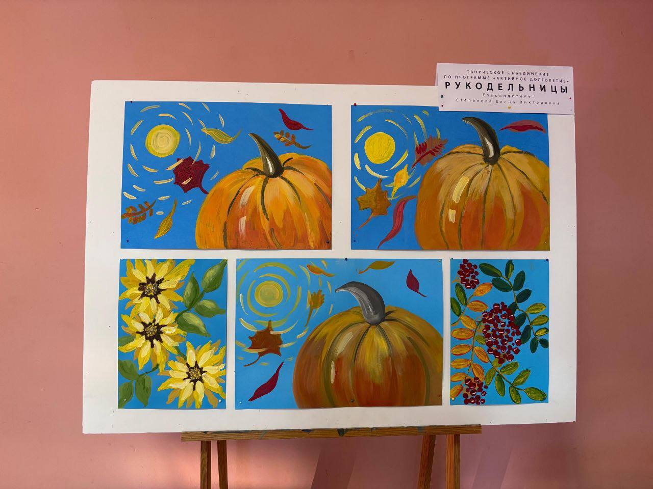 Используя яркие осенние краски участницы объединения создали незабываемые композиции в технике гуашь.