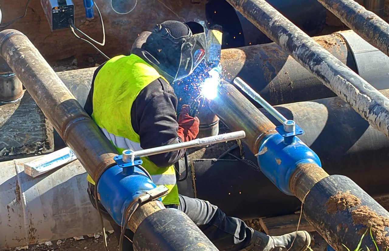 После совещания мы с коллегами выехали в микрорайон Новлянский, где идет плановый перевод подачи тепла и горячей воды со старых сетей на новые. На площадке трудятся около сотни специалистов и девять единиц техники. В ближайшие сутки работы будут завершены, и начнется заполнение системы.