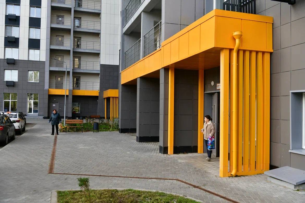 В этом доме было приобретено 263 квартиры для переселенцев из аварийного жилья Красноармейска. Оценили качество строительства и инфраструктуры дома. Это современное здание с благоустроенной территорией, жители очень довольны. Просторно, светло и никакие слова сравнения с тем, в каких условиях люди жили раньше, подобрать нельзя.