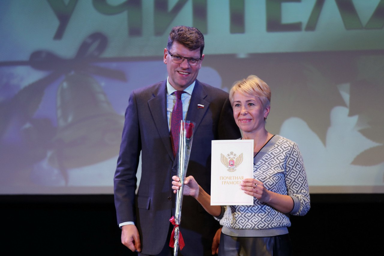 С тёплыми словами и пожеланиями обратились к педагогам депутаты Государственной Думы Ирина Роднина и Денис Кравченко, председатель Совета депутатов Долгопрудного Дмитрий Балабанов.