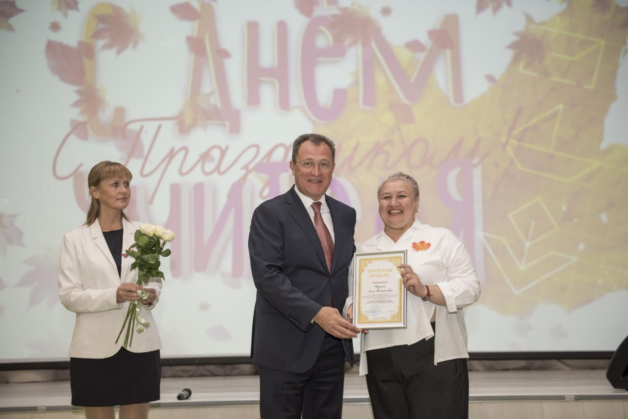На мероприятие наградили заслуженных работников. Звание «Почетный работник сферы образования РФ» присвоено: Анне Слепневой («Ногинская гимназия», стаж 23 года), Светлане Светиковой (Центр образования №8, стаж 43 года), Светлане Лебедевой (Управление образования, стаж 35 лет)