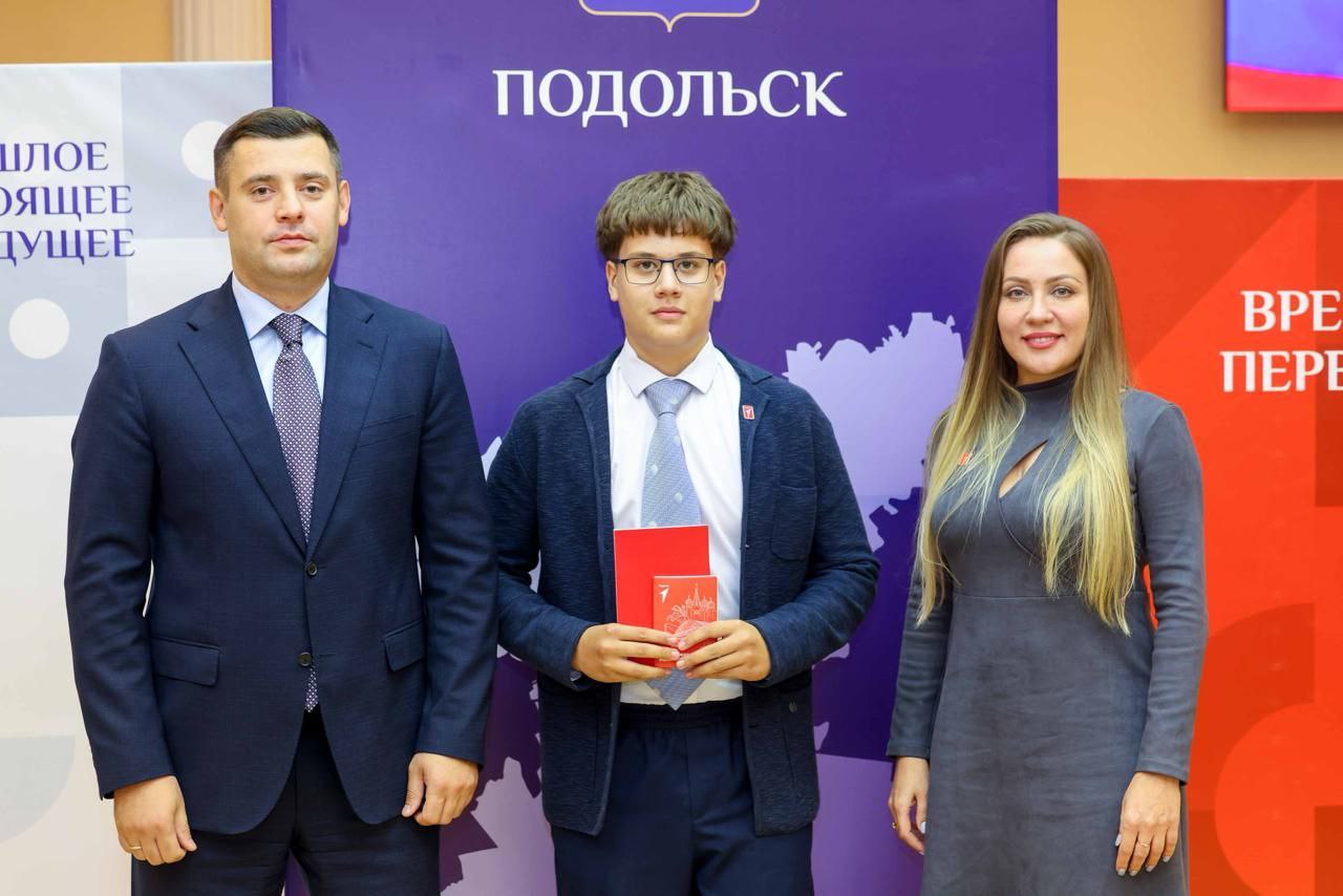 Сегодня, в преддверии 244-й годовщины основания Подольска и образования Подольского уезда, вручил юным жителям первые паспорта. Ко мне присоединилась председатель «Движения Первых» Городского округа Подольск Ольга Шацких.