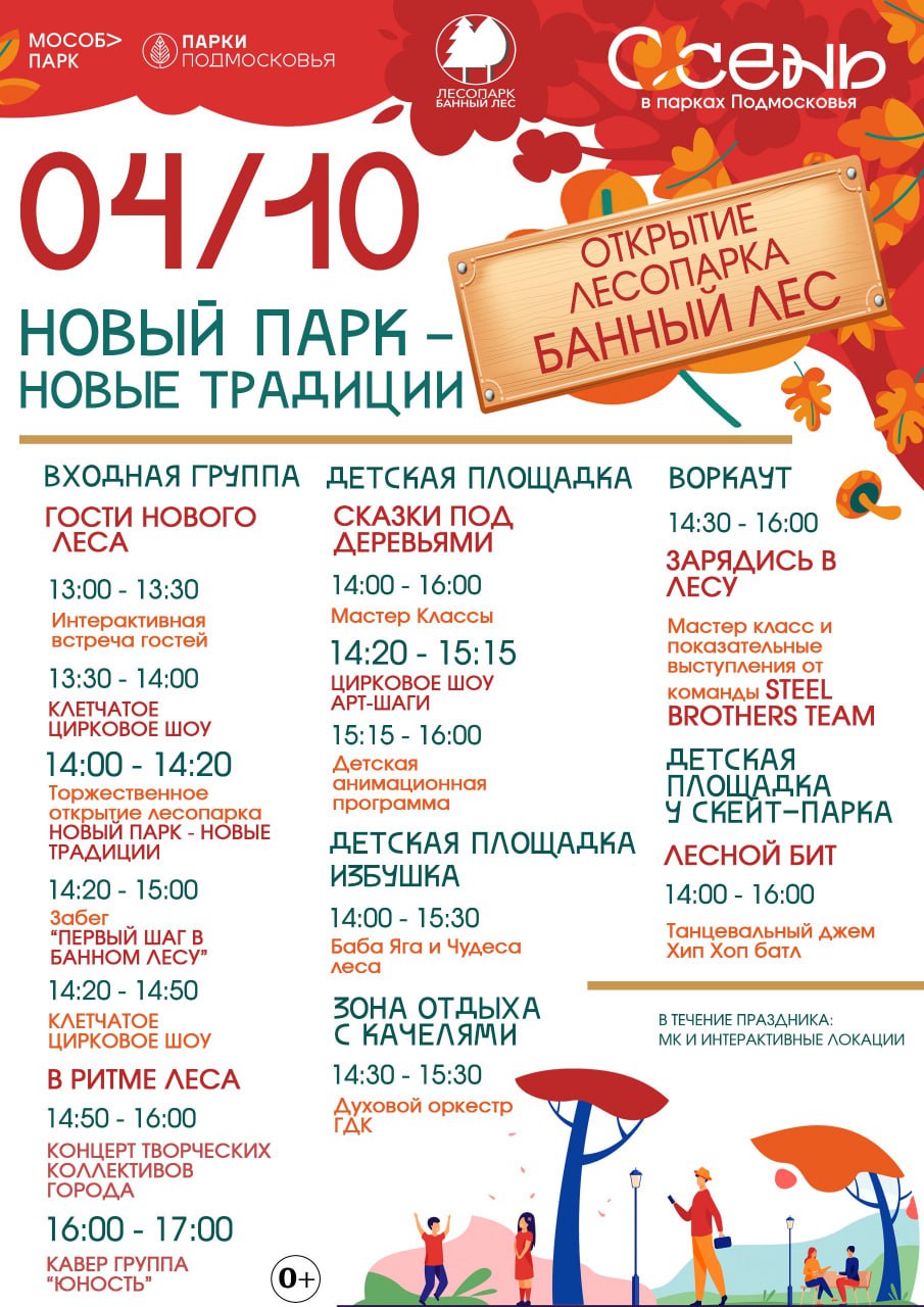 Новый парк – новые традиции! 4 октября состоится масштабное открытие обновлённого лесопарка "Банный лес".