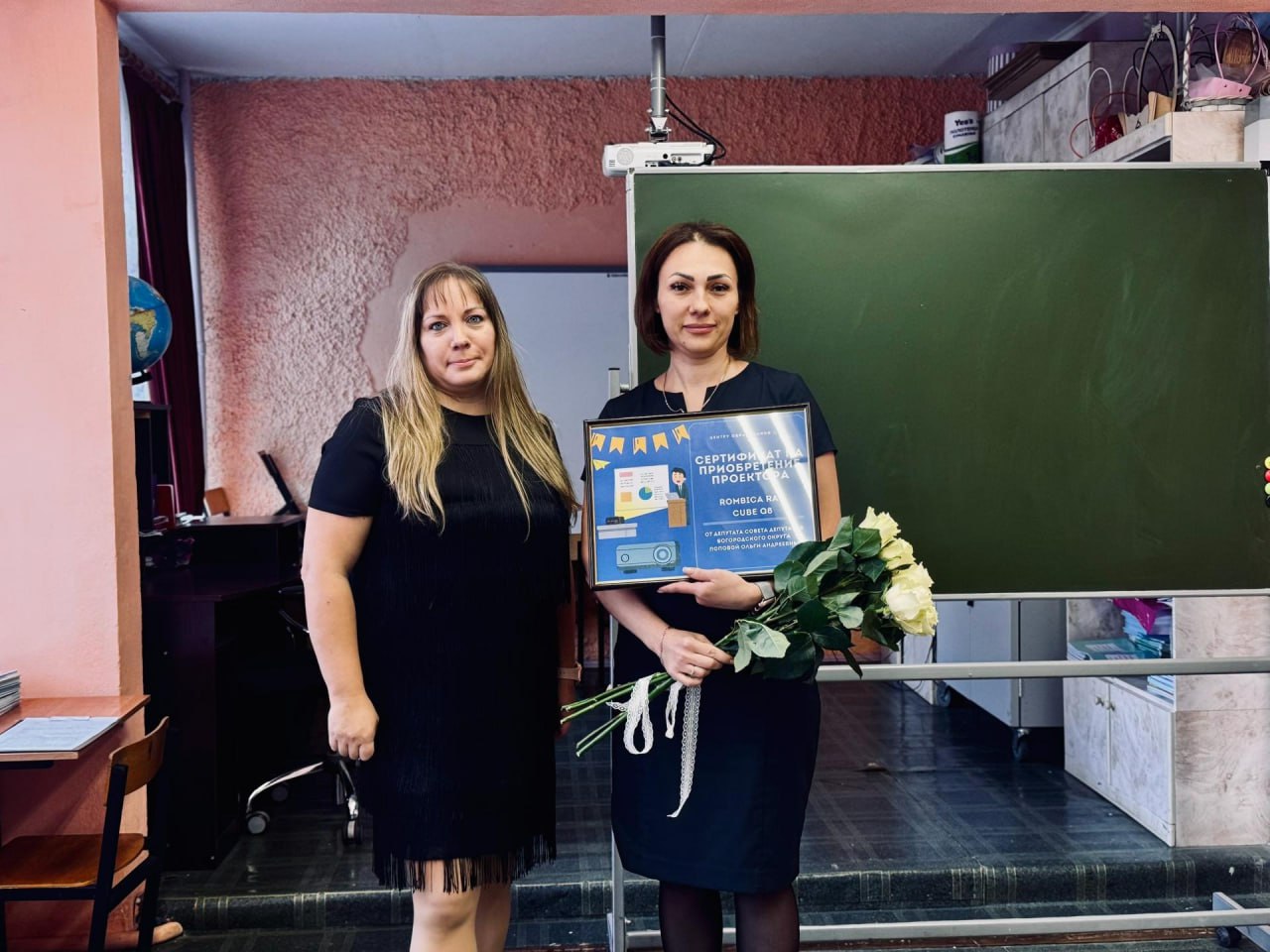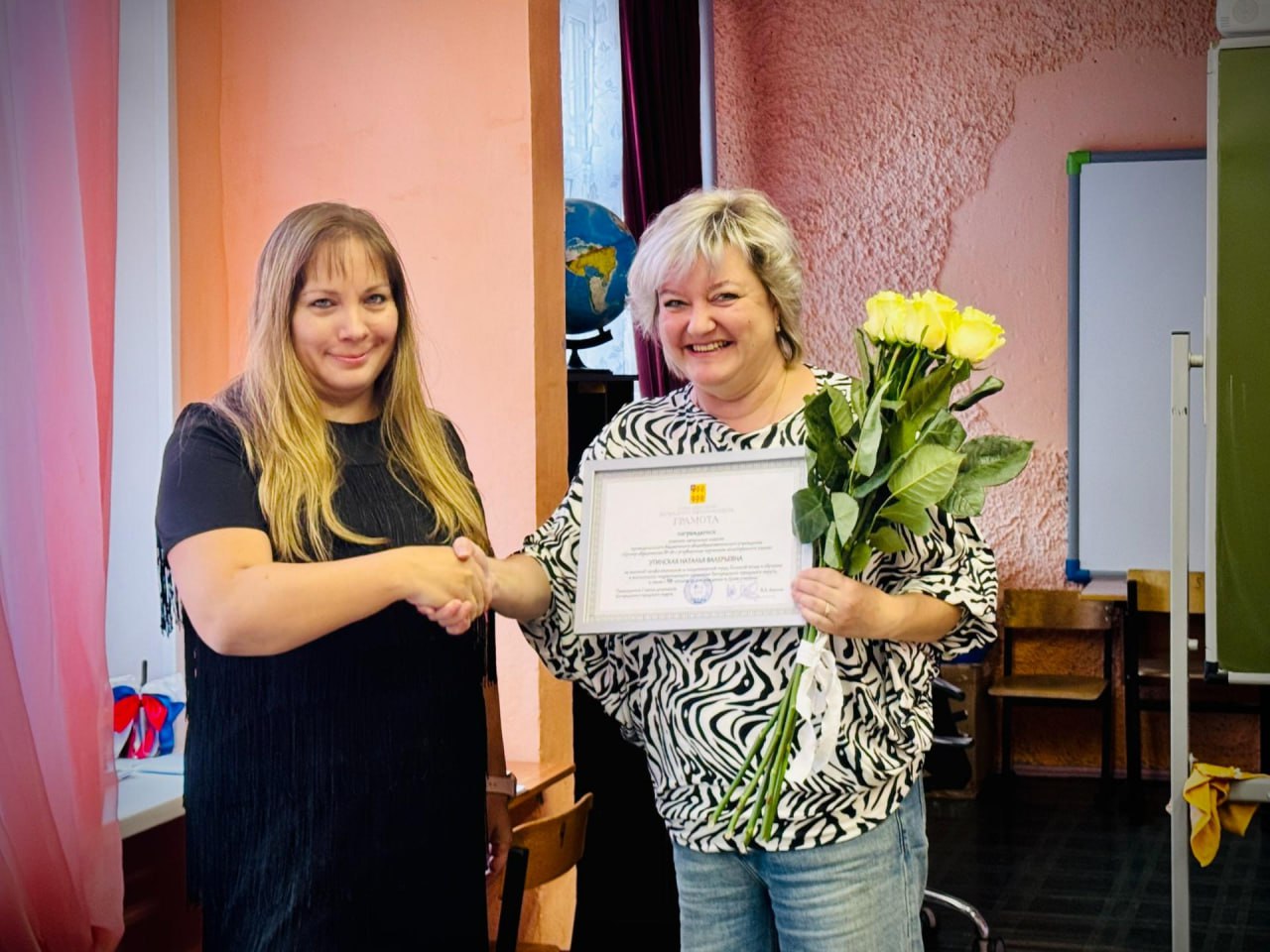 От имени Совета депутатов Ольга Андреевна вручила почётную грамоту педагогу начальных классов Наталье Утинской, которая отмечает 50-летний юбилей и имеет почти 29 лет педагогического стажа. Также для школы был приобретен новый проектор, который сделает уроки более наглядными и интересными.