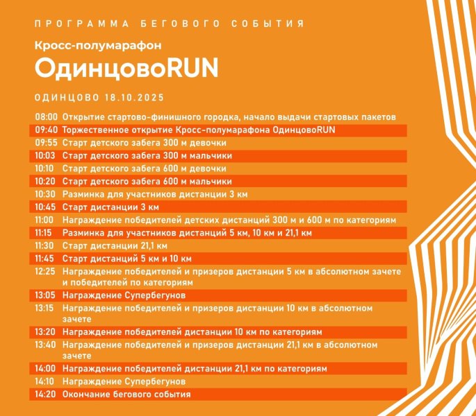 Серия забегов Суперлиги Подмосковья - 2025 подходит к финалу: 18 октября кросс-полумарафон «Одинцово RUN» соберёт участников для заключительного старта сезона