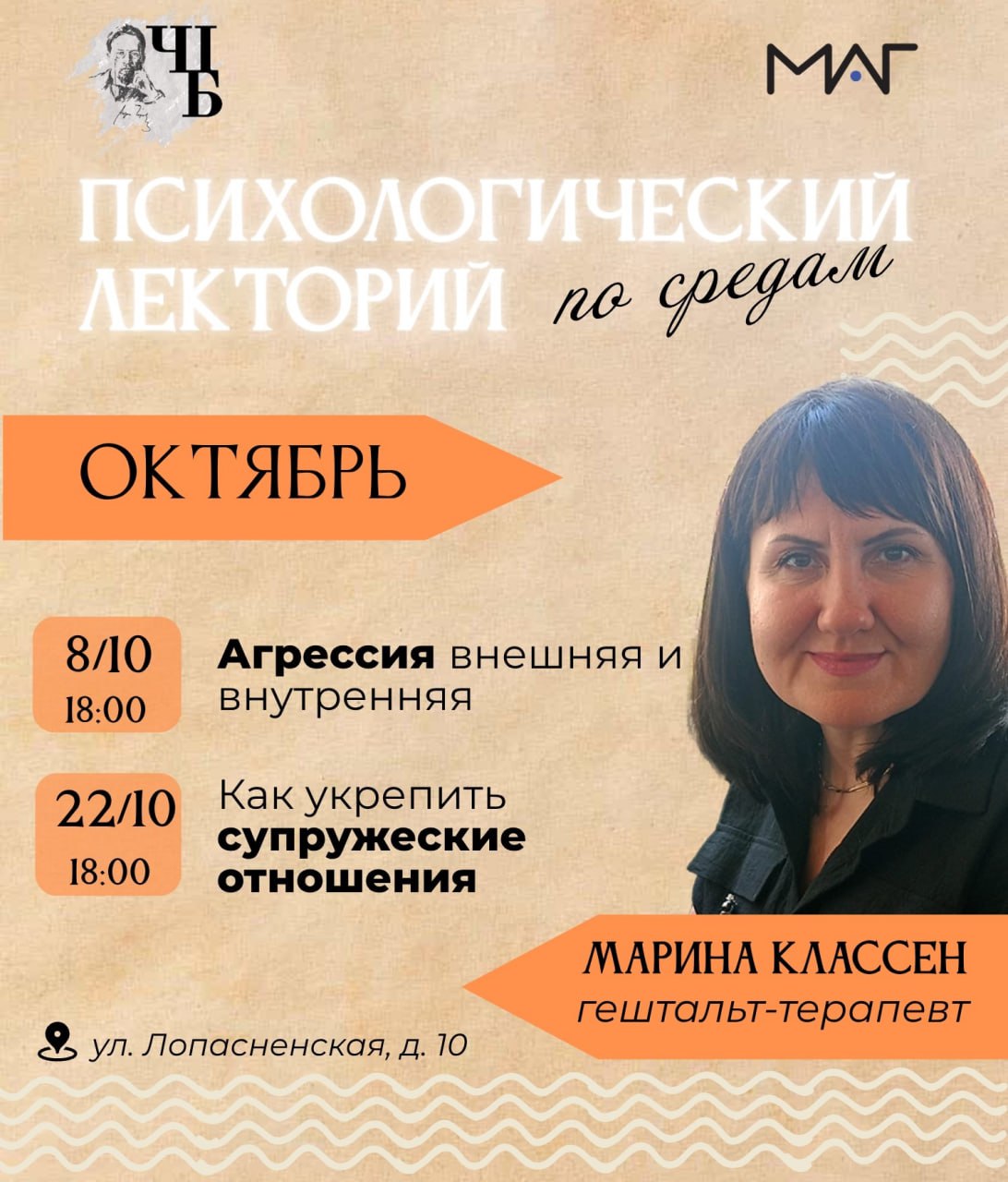 Центральная библиотека г. Чехова и Международная Академия Гештальта (г. Москва) приглашают вас на новые встречи в рамках нашего совместного проекта. Вас ждут актуальные темы, живое обсуждение и ответы на вопросы от опытного психолога.