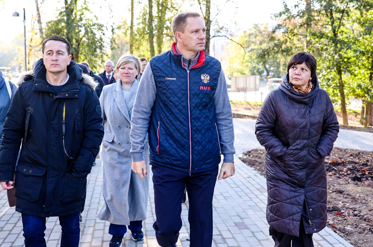 В Яблоневом сквере наряду с пешеходной инфраструктурой, обновляется территория у памятника фронтовому кинооператору, ведется озеленение, монтаж уличного освещения, остановочного павильона, плиточного покрытия, установлены новые конструкции скейт-парка. Важная задача – чтобы скверовые пространства, продолжая традиции первостроителей, было яркой и заметной точкой в инфраструктуре города. Аналогичная задача в части комфорта и уюта стоит по Городскому парку, где наполняемость должна идти вровень с исторической составляющей. Это и восстановленные скульптуры, и фонтан, и «Зеленый театр», и пирс у пруда, который обустраиваем по просьбе жителей.