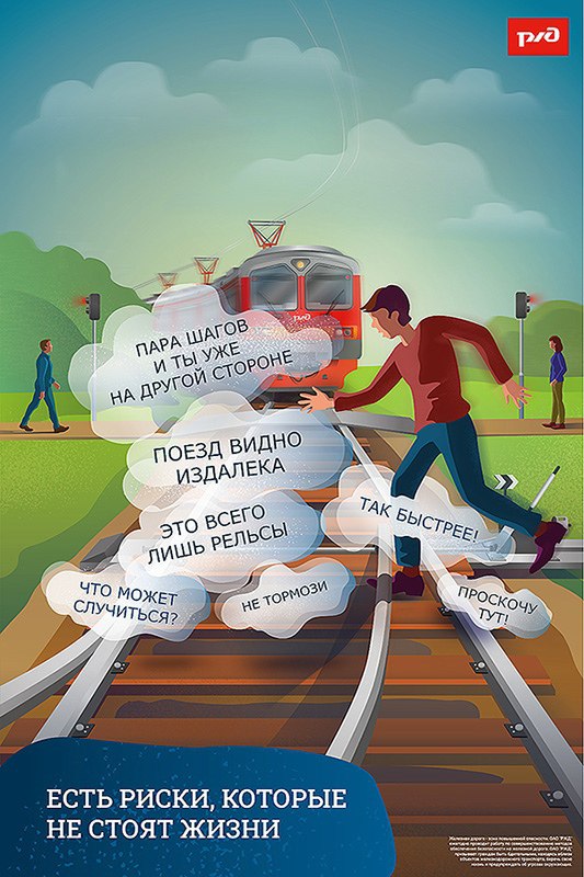 НЕ перебегать железнодорожные пути перед приближающимся поездом