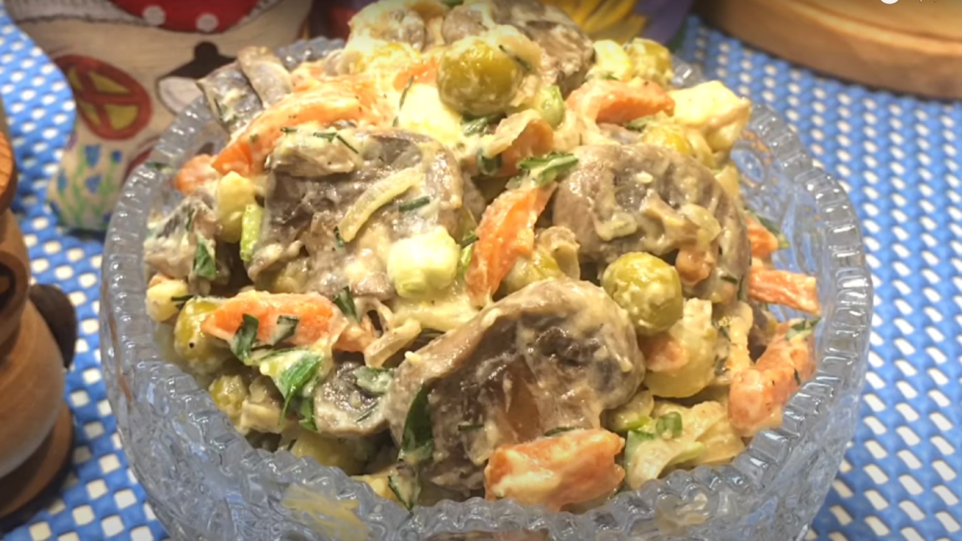 Если оливье уже надоел, то приготовьте с зеленым горошком другой салат. Вместо колбасы в нем жареные грибы. Этот ингредиент делает угощенье особенно пикантным. Рецептом с порталом «Городовой» поделился шеф-повар Владимир Тавлинцев.