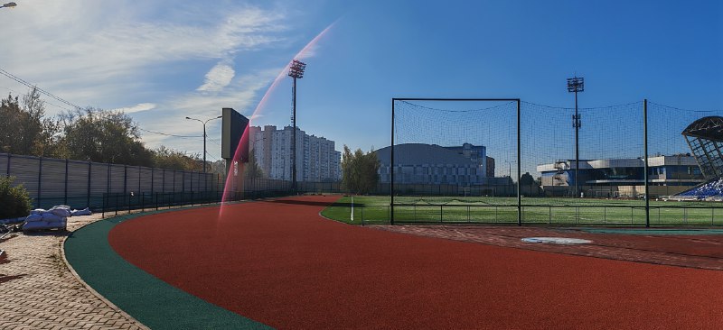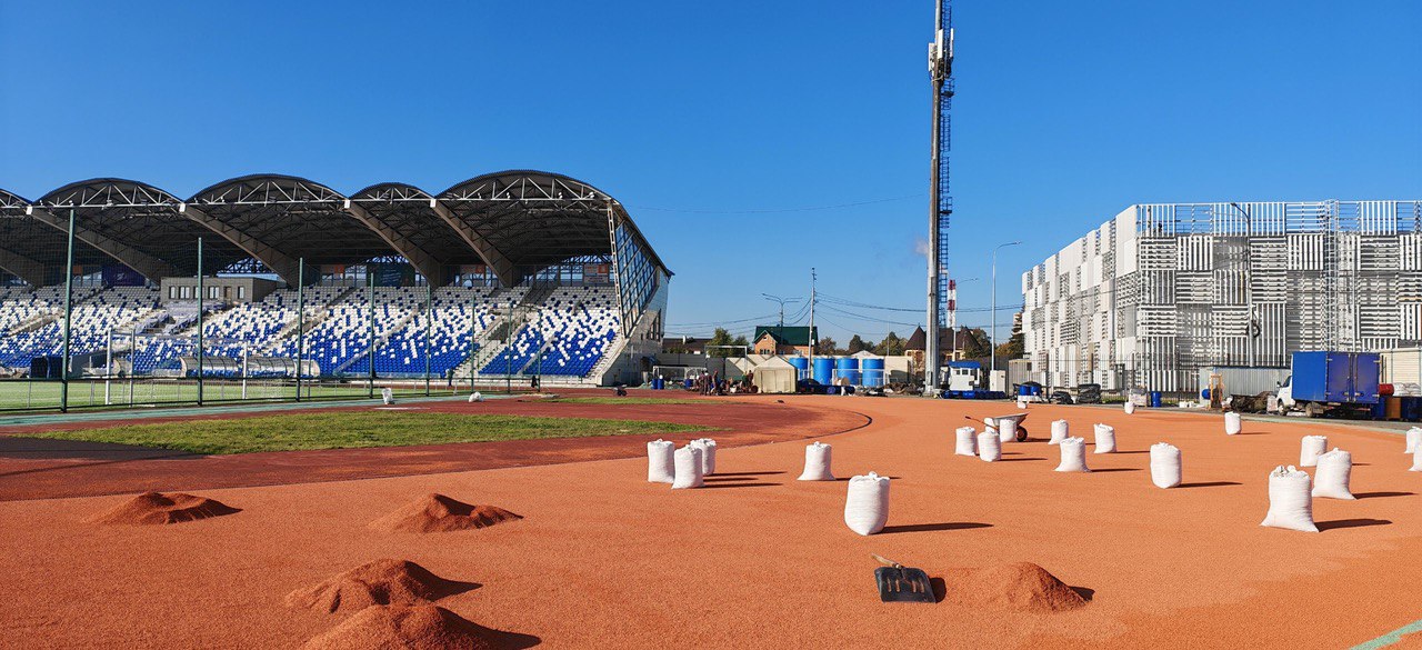 Сейчас идёт нанесение финишного покрытия на беговые дорожки. Главный инженер Виктор Арбузов сообщил, что осталось покрыть всего 120 метров.
