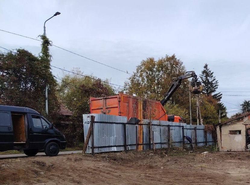 Сотрудники МБУ «БИО» собирают и вывозят мусор с территории, демонтируют повреждённые постройки. Строители продолжают работы по восстановлению ограждений по периметру участков.