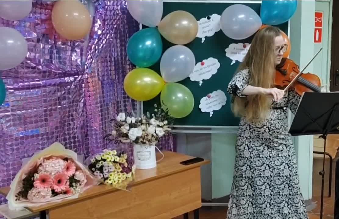 С днем учителя! С утра в стенах гимназии звучит живая скрипка, учащиеся и родители 9а класса поздравили учителей с праздником. В воздухе витает торжественное настроение, смешиваясь с ароматом свежих цветов, которые ученики с любовью преподнесли своим наставникам.