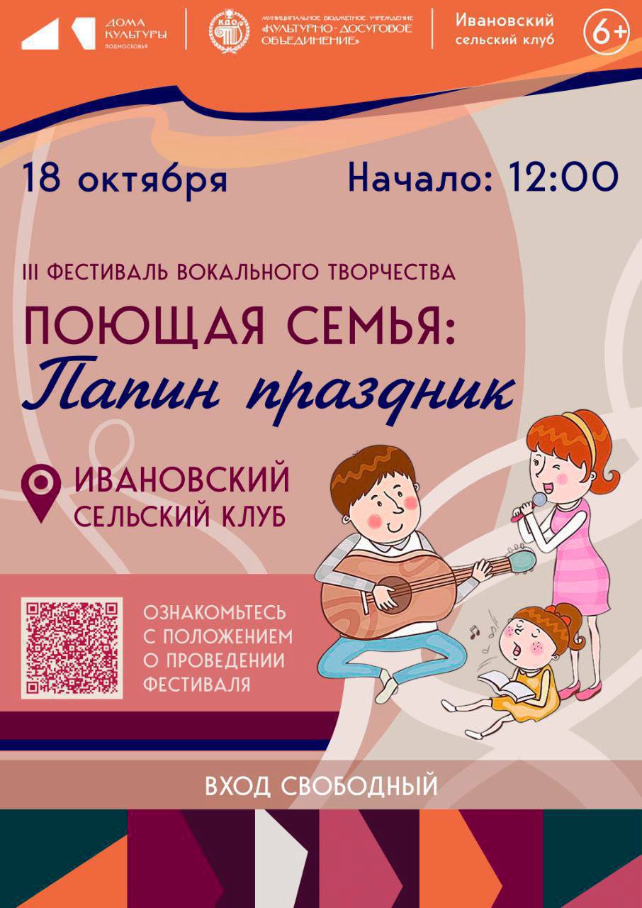 Ко Дню отца, который отмечается в России в третье воскресенье октября, МБУ «Культурно-досуговое объединение» и Ивановский сельский клуб объявляют о III Фестивале вокального творчества «Поющая семья: папин праздник».