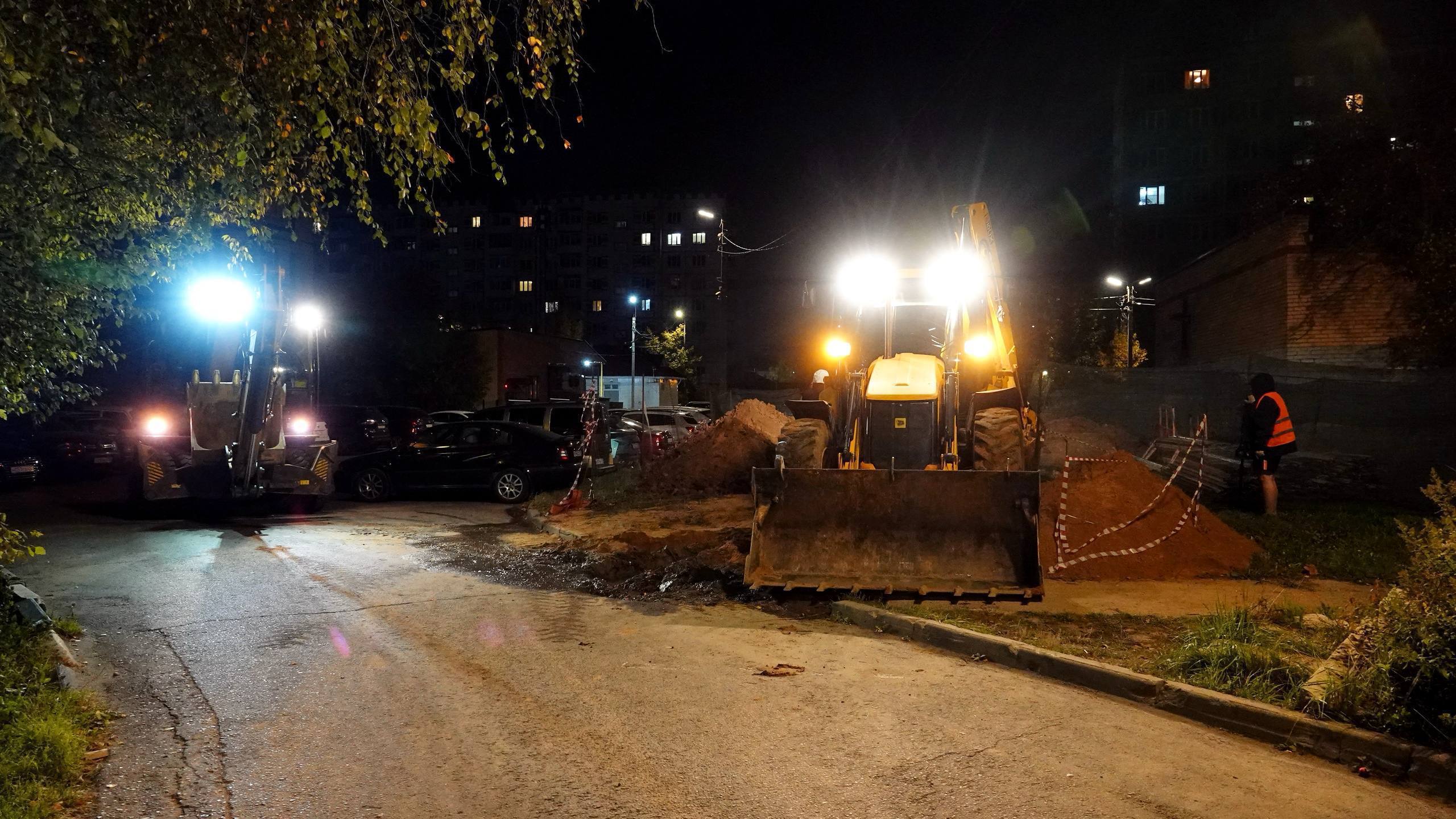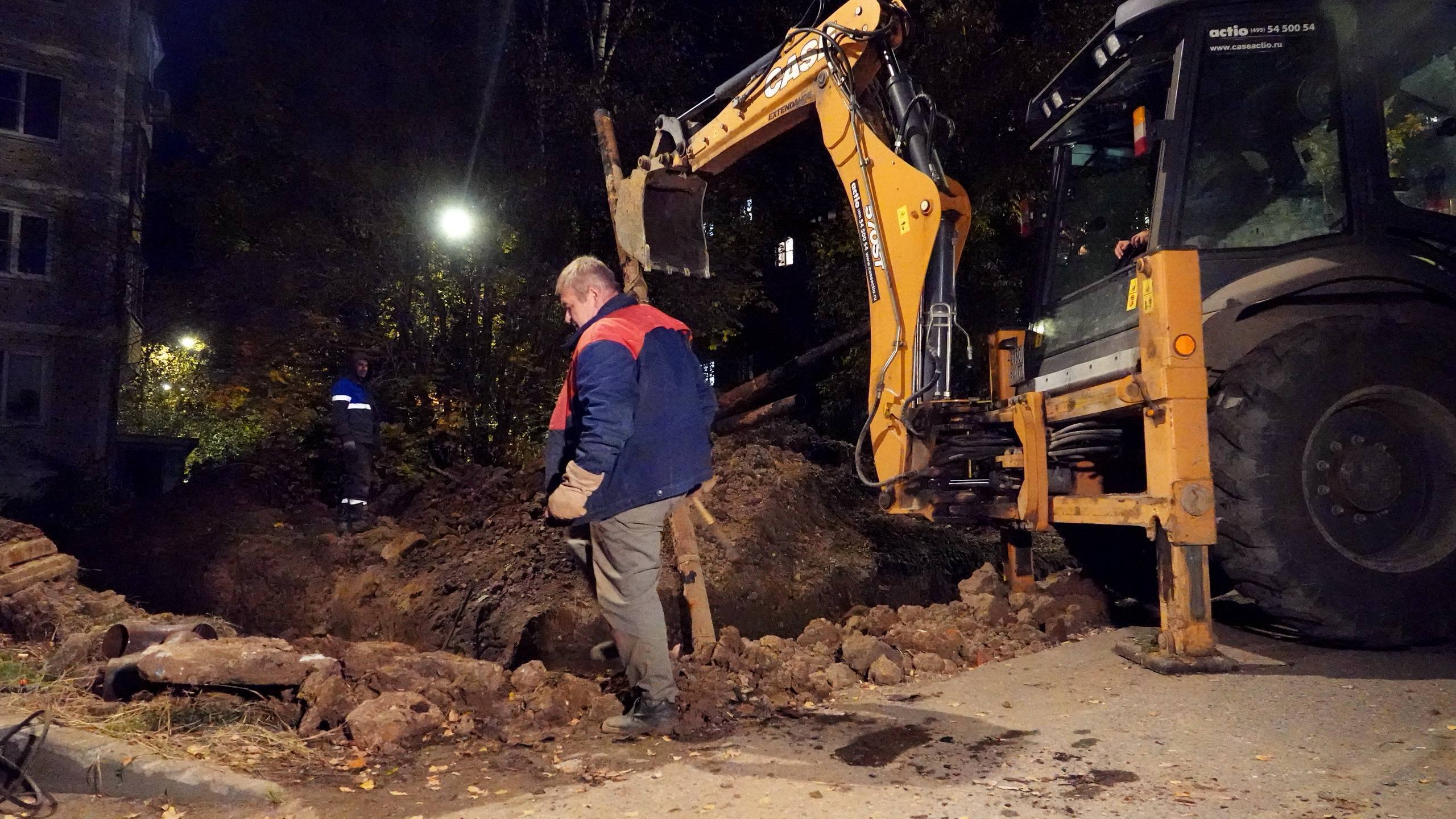 Продолжаются работы и на Новоугличском шоссе в районе домов 101 и 102. Здесь большой участок под замену — порядка 100 метров.
