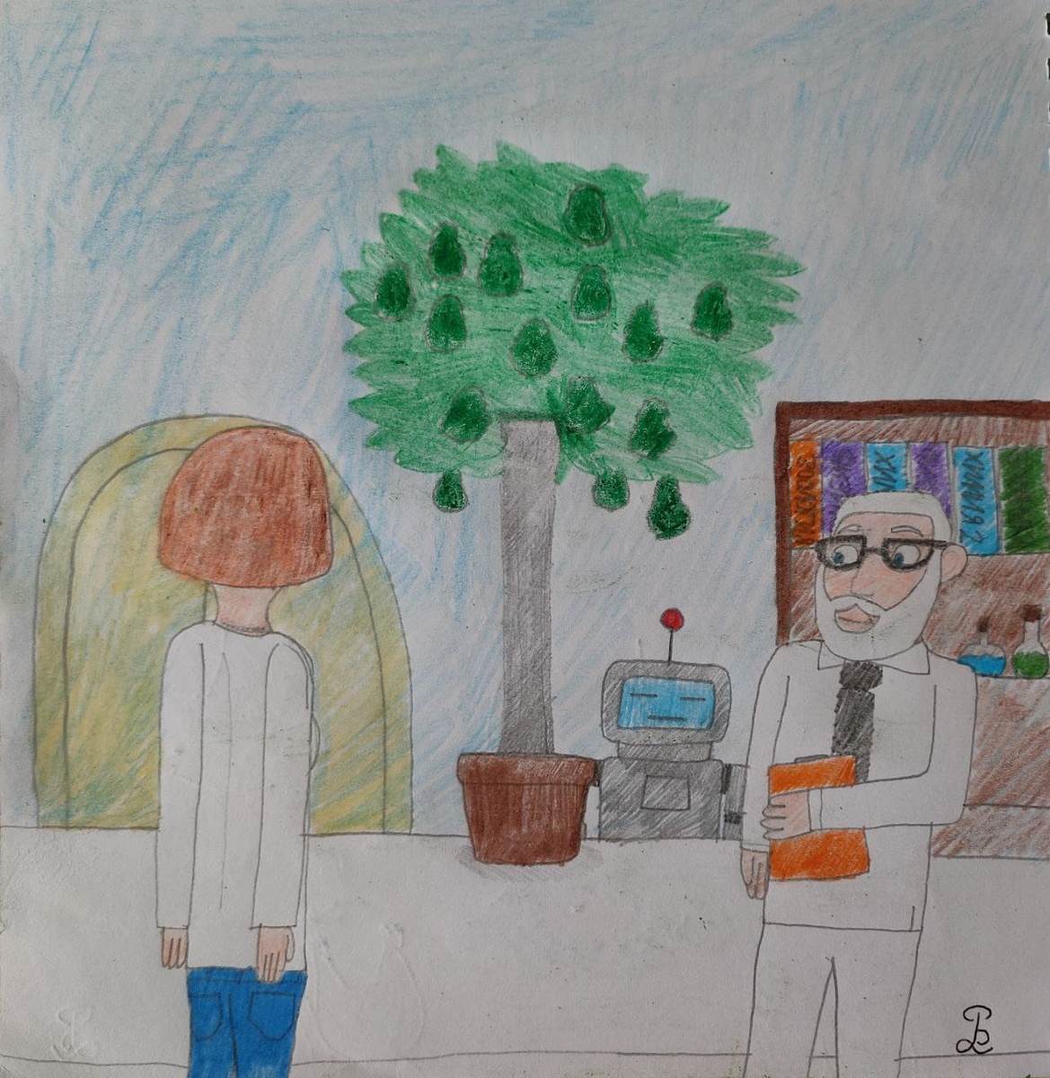 Профессор с гордостью рассказывает о своем методе ухода за растением: регулярное удобрение, борьба с вредителями и использование чистой воды из родников. Неподалеку появляется молодая девушка по имени Ирина, обладающая выразительными бирюзовыми глазами и необычной внешностью, она смотрит на авокадо с восхищением и интересом.