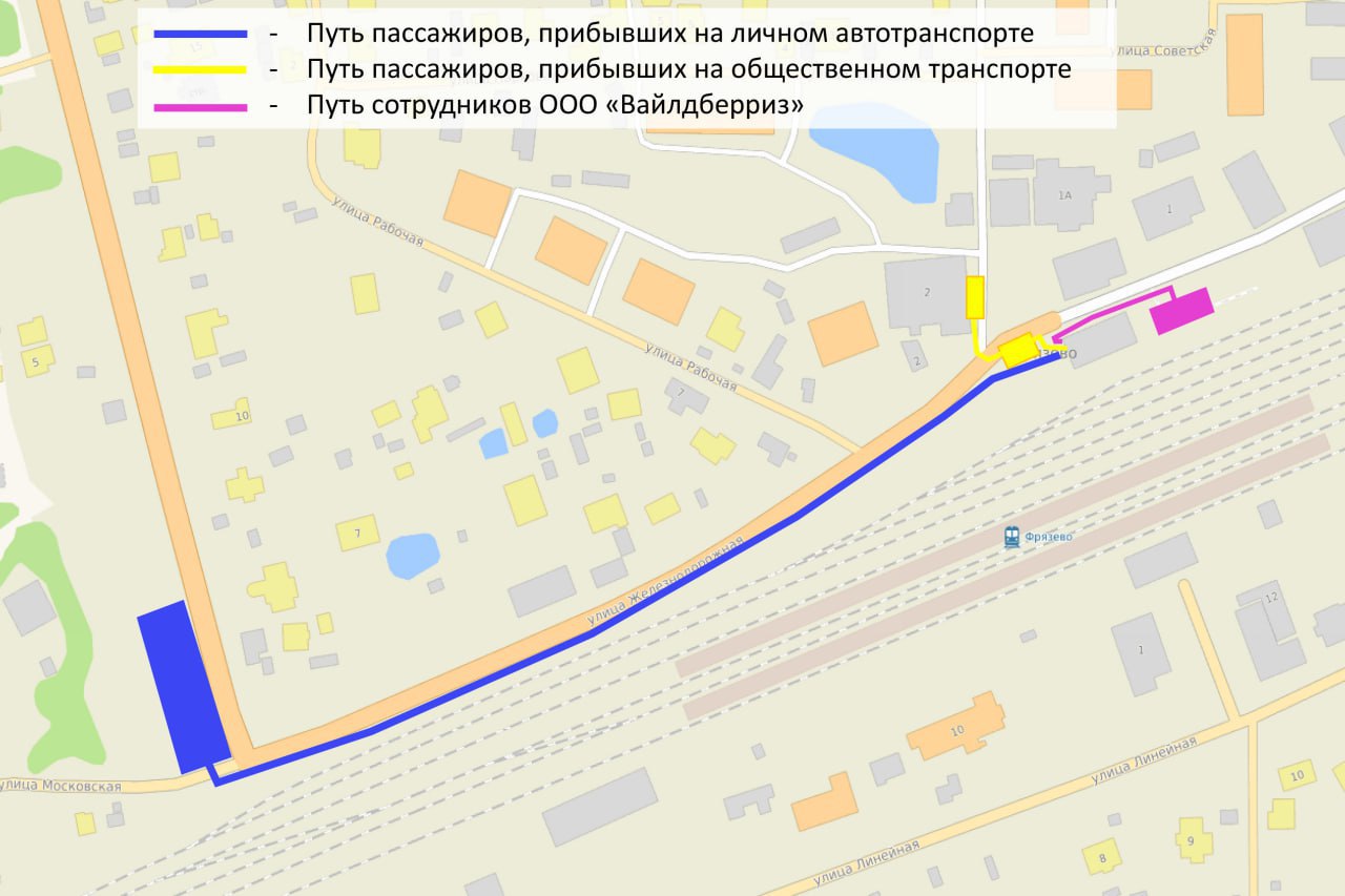обустроить тротуар от перехватывающей парковки, по которому жители, оставившие свой транспорт, смогут комфортно дойти до станции (синий цвет)
