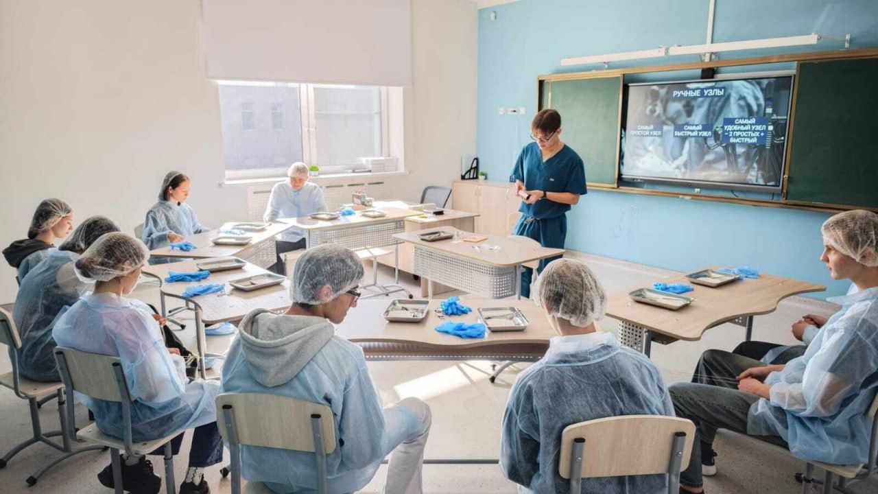Студенты лечебного и стоматологического факультетов «РосУниМеда» организовали для школьников интерактивные мастер-классы, где продемонстрировали практические аспекты врачебной деятельности: от наложения хирургических швов до определения группы крови.