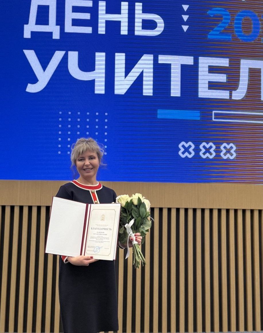 Учителя химии мытищинского лицея № 34 в честь профессионального праздника наградили в Доме Правительства Московской области