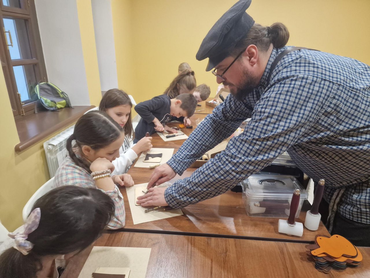 Мастер-класс оказался не просто рукоделием, а настоящее погружением в историю. Александр познакомил участников с эволюцией кожевенного дела, показав старинные и современные инструменты. Он наглядно объяснил, как менялась технология обработки кожи на протяжении веков.