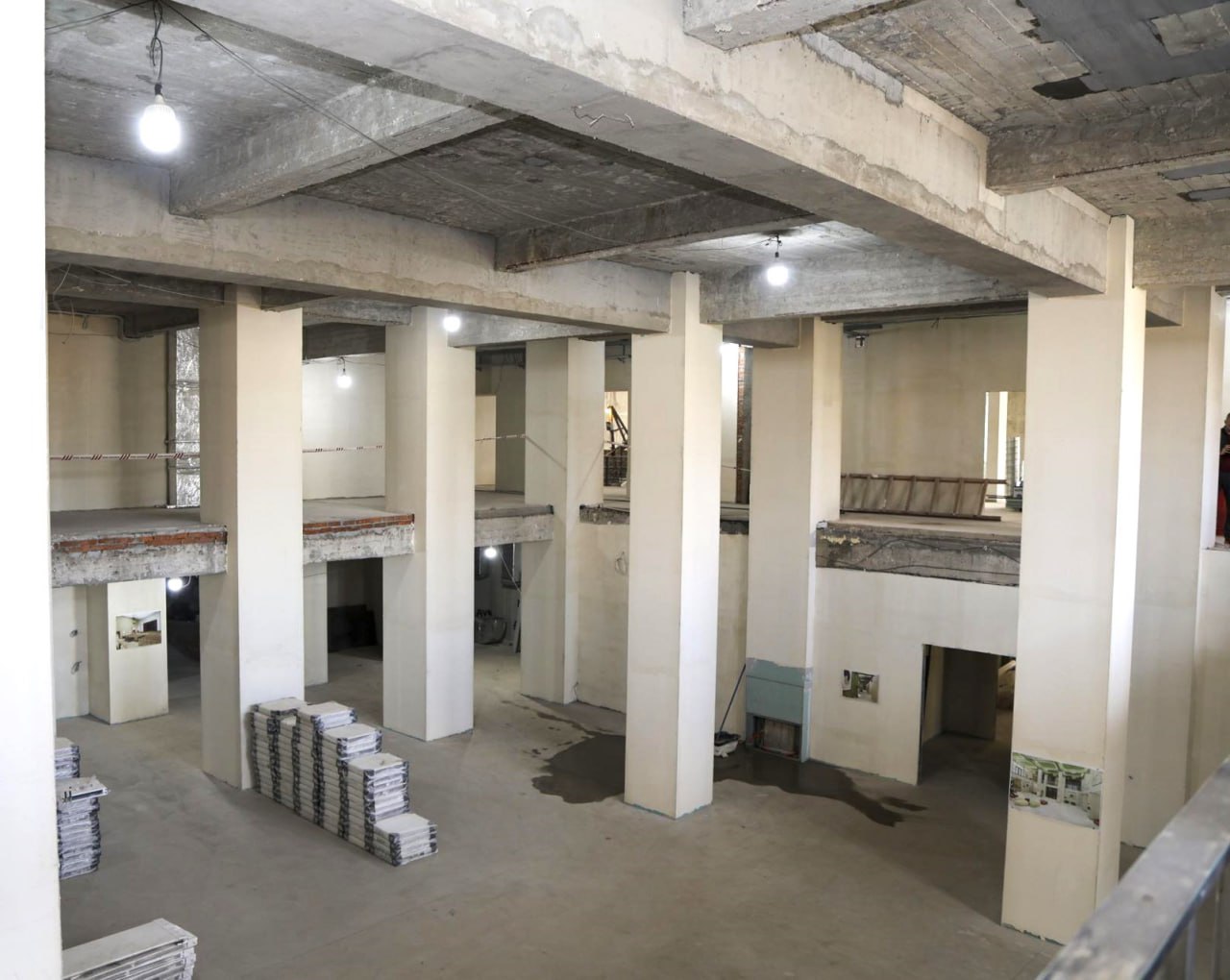 Внутри рабочие штукатурят стены, монтируют каркасы под подвесные потолки и панорамные окна, которые добавят пространству света и уюта. Параллельно ведут инженерные коммуникации: электрические, отопительные и слаботочные сети.