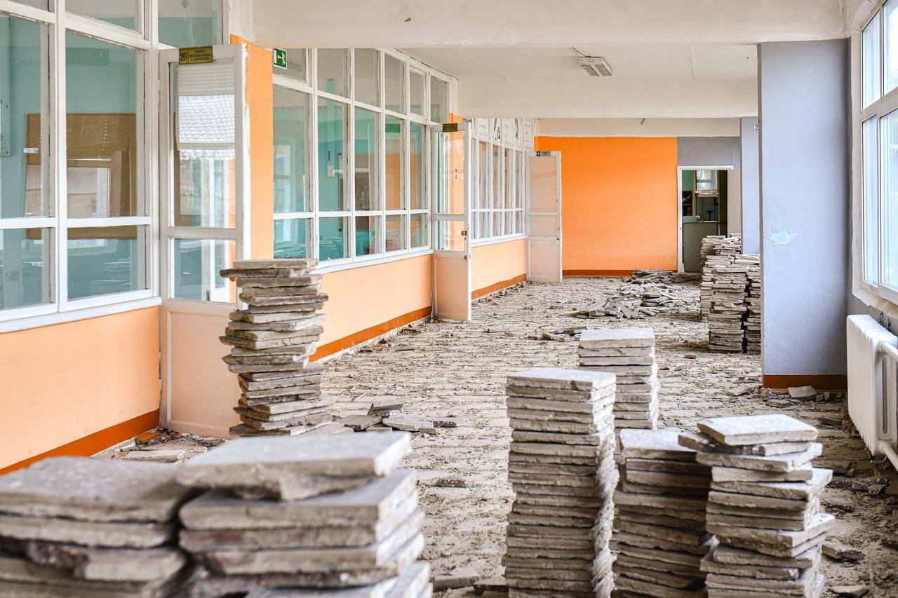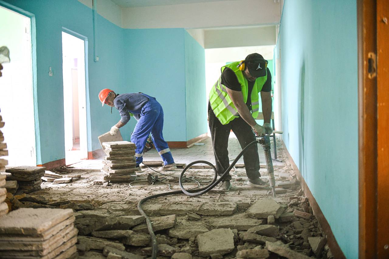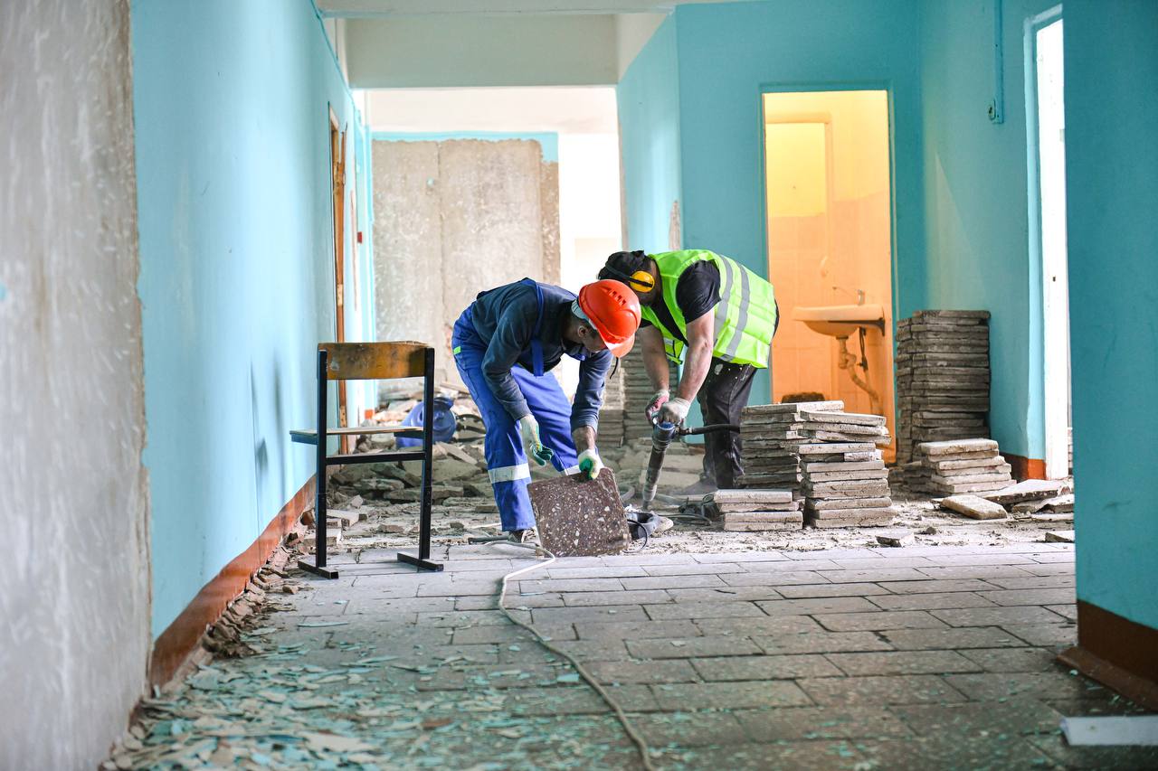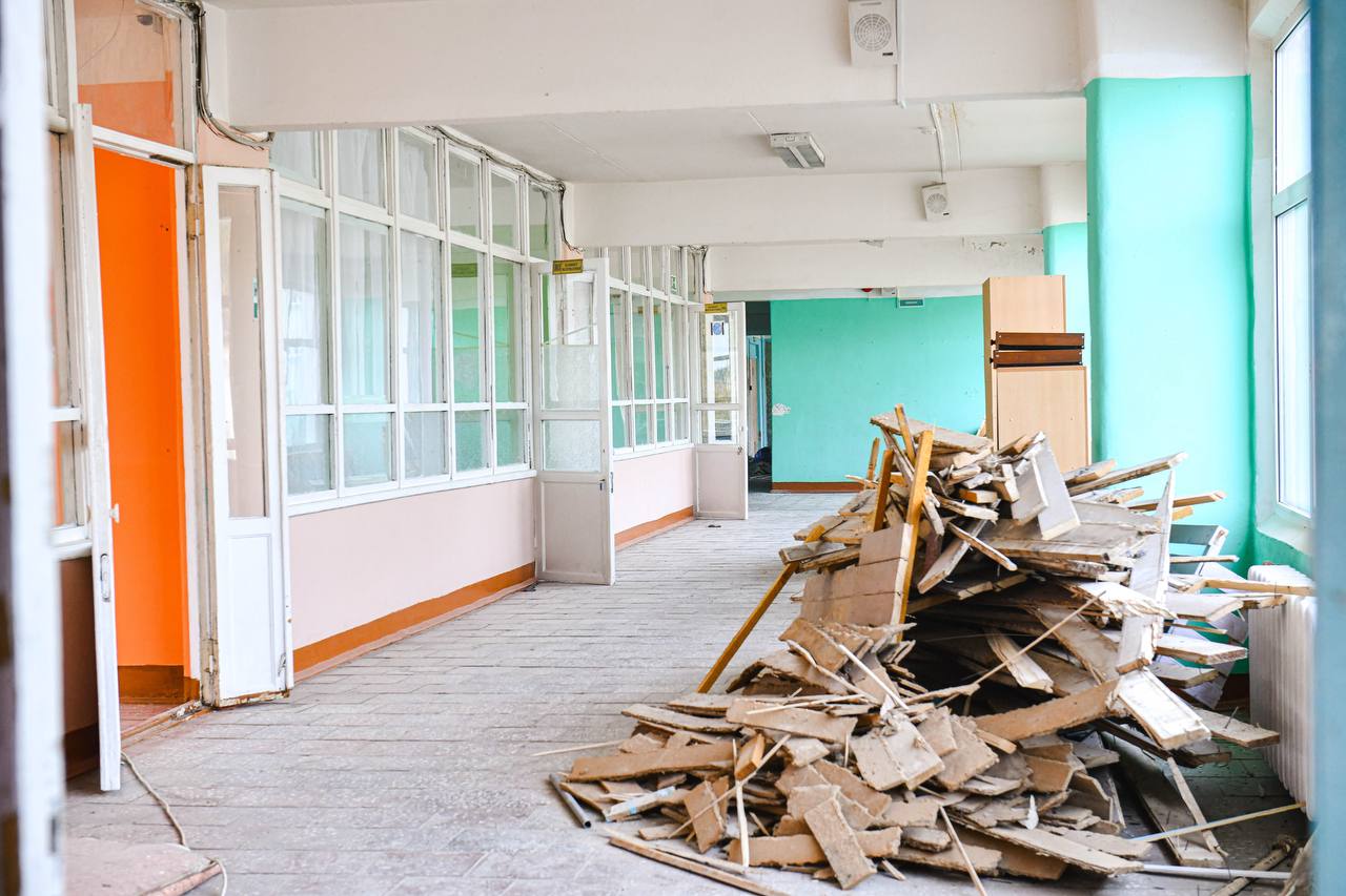На первых этапах ремонта на объекте площадью около девяти тысяч квадратных метров трудятся 18 специалистов. В последующем штат увеличат до 80 рабочих. Сейчас в школе проводят демонтажные работы.