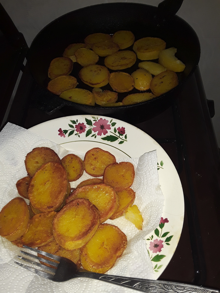 - Подготовка к жарке: Очистите картошку и нарежьте ее кружочками. Разложите нарезанные колечки в один слой на сковороде, чтобы они evenly подрумянились.