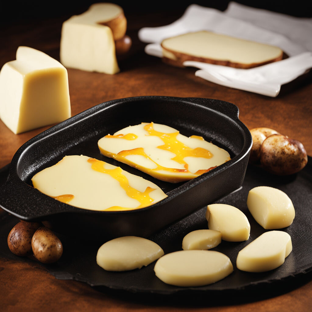 Приготовление раклета начинается с очищения и нарезки картофеля на кубики, после чего сыры тщательно трут на терке. Затем следует смешать натертые сыры с вином, чесноком, солью и перцем. Получившуюся массу выкладывают на картофель в форме для запекания и ставят в духовку при 180°C на 40 минут до золотистой корочки.