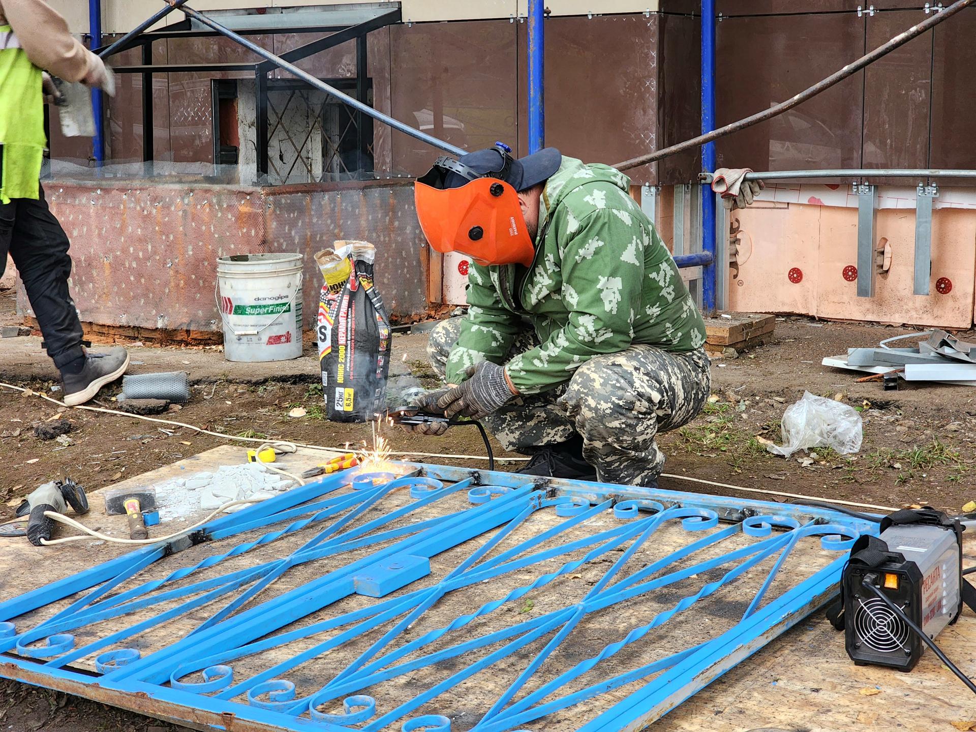На объекте задействовано 8 специалистов, которые выполняют монтаж вентилируемого фасада, укладку утеплителя и керамогранита — на данный момент работы выполнены более чем на 60%.