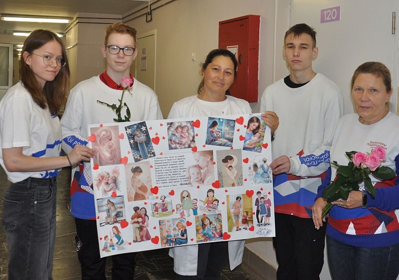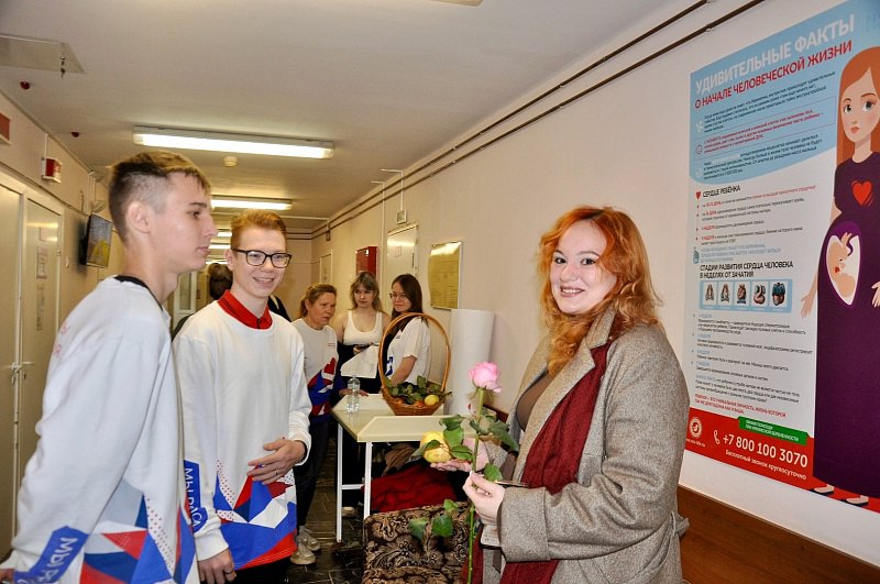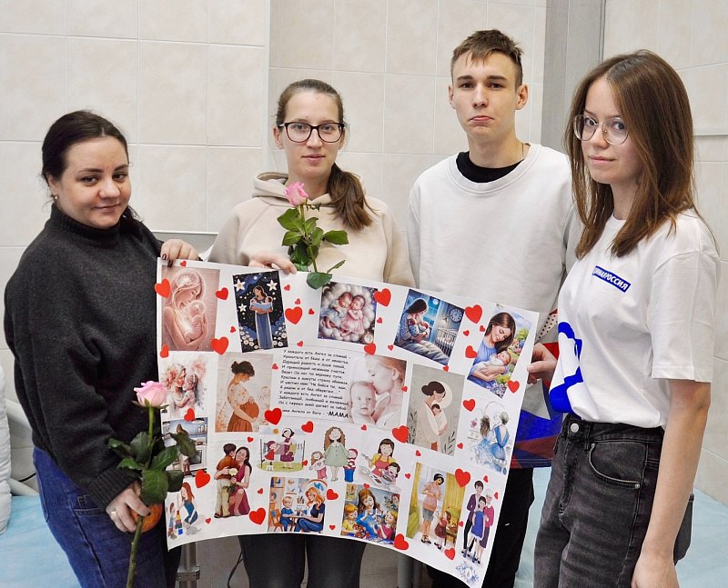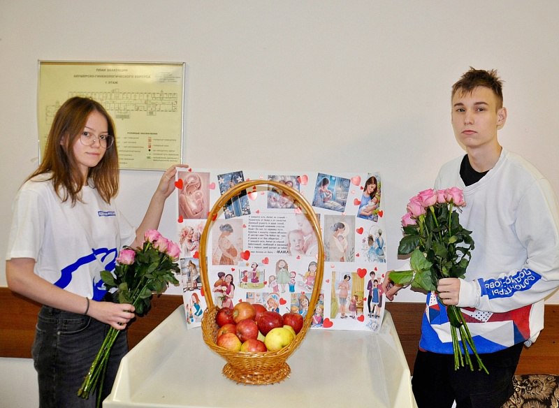 Волонтеры с улыбкой встречали каждую посетительницу, вручая им цветы и выражая самые добрые пожелания. Они говорили о том, как важен этот период ожидания, желали крепкого здоровья, семейного счастья, уюта в доме и, конечно же, спокойствия. Также ребята заранее подготовили праздничный коллаж, который трогательно передавал всю нежность и заботу, связанные с ожиданием малыша.