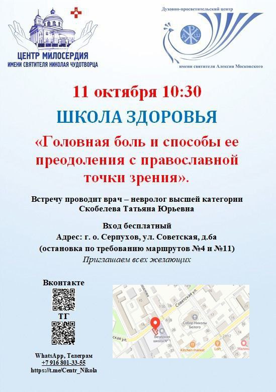 Центр милосердия им. святителя Николая Чудотворца приглашает серпуховичей посетить «Школу здоровья».