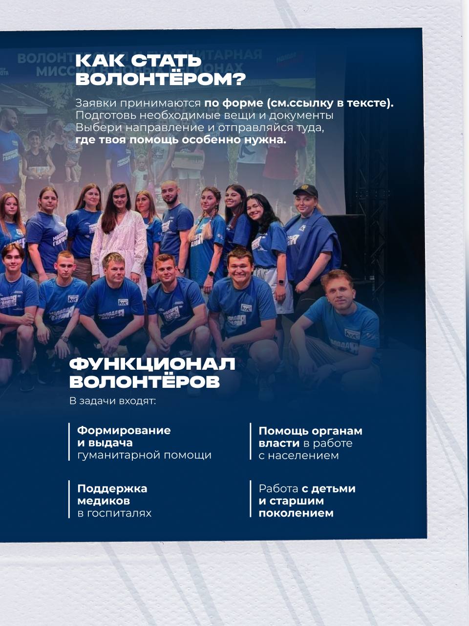 Присоединяйся к волонтёрским отрядам Молодой Гвардии Единой России и помоги жителям новых территорий!